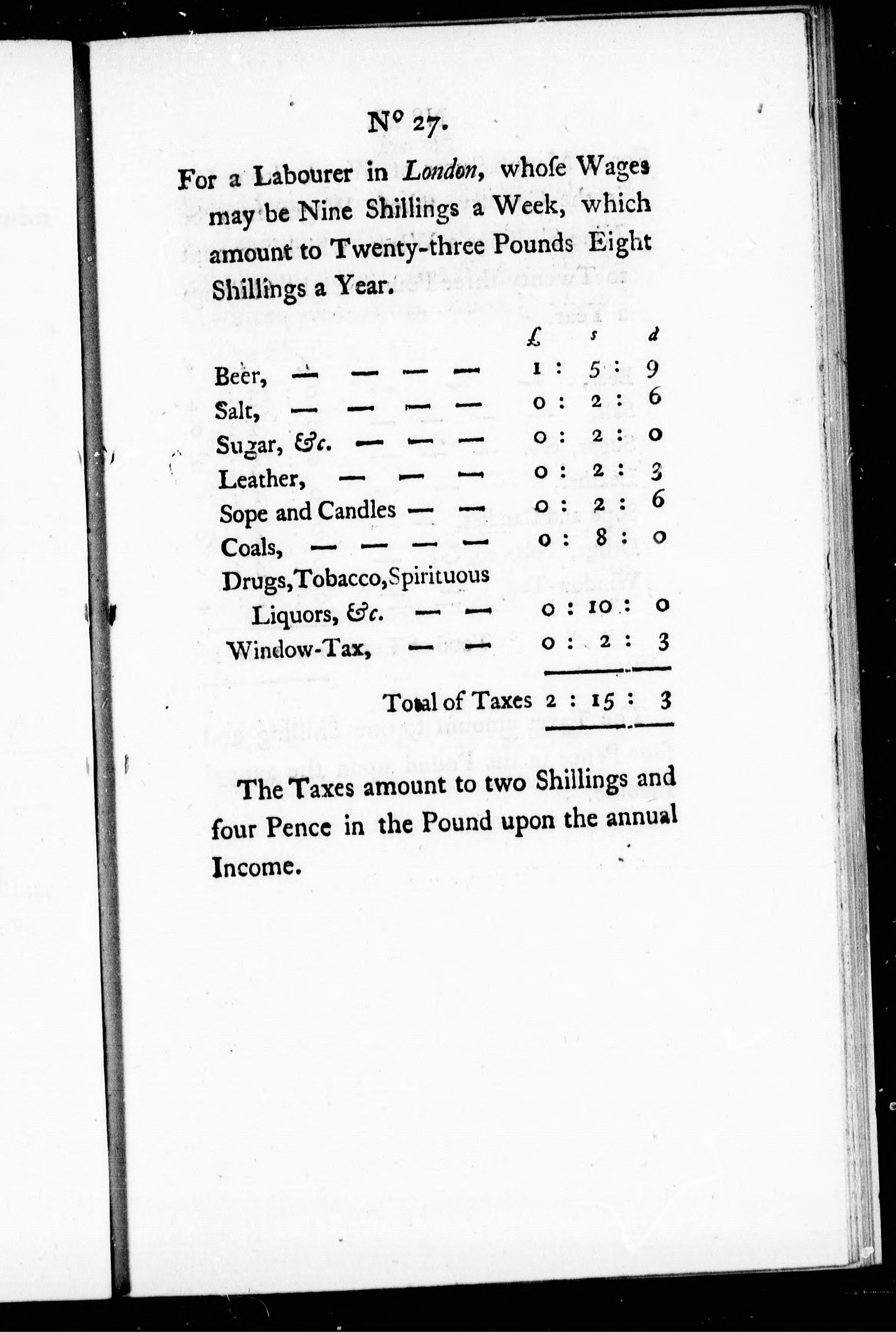 Calculations of the present taxes yearly paid by a family of each rank, degree, or class