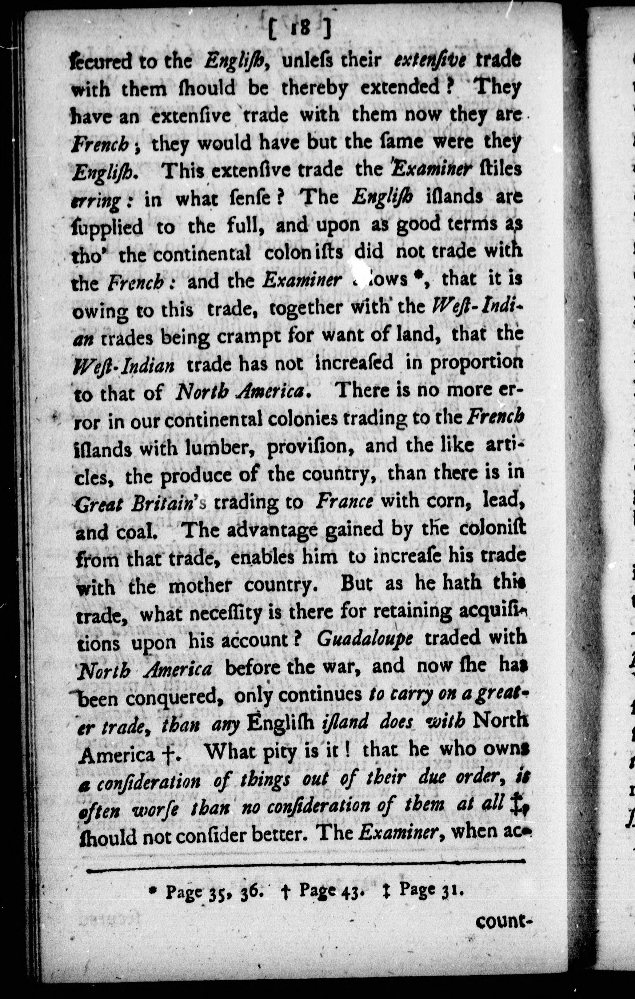 Thoughts on trade in general, our West-Indian in particular, our continental colonies, Canada, Guadaloupe, and the preliminary articles of peace :