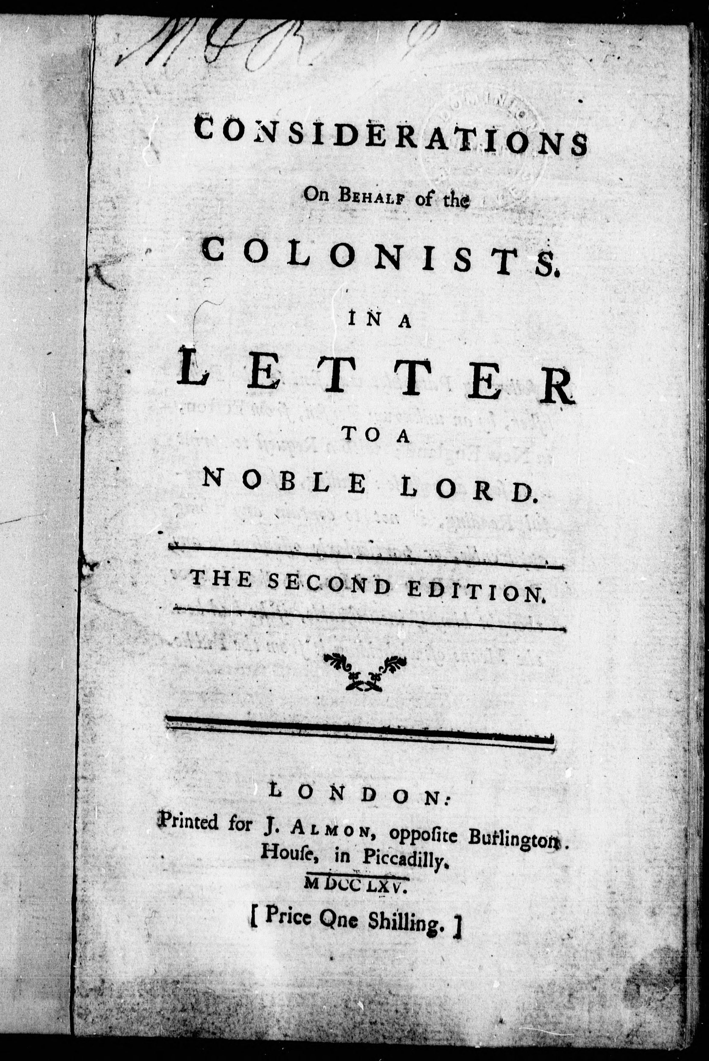 - Considerations on behalf of the colonists : in a letter to a noble lord.