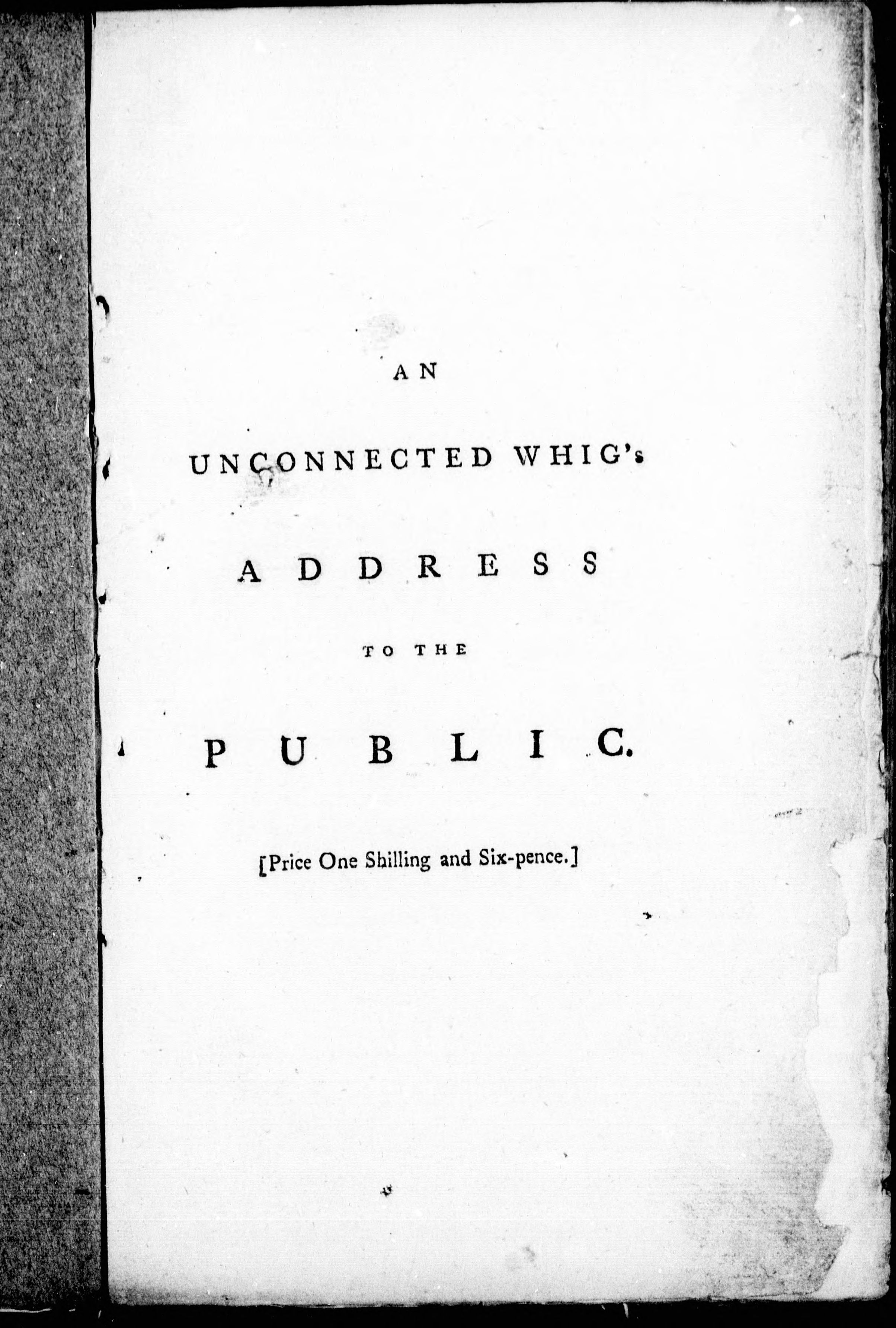 - An Unconnected Whig's address to the public : upon the present civil war, the state of public affairs, and the real cause of all the national calamities.