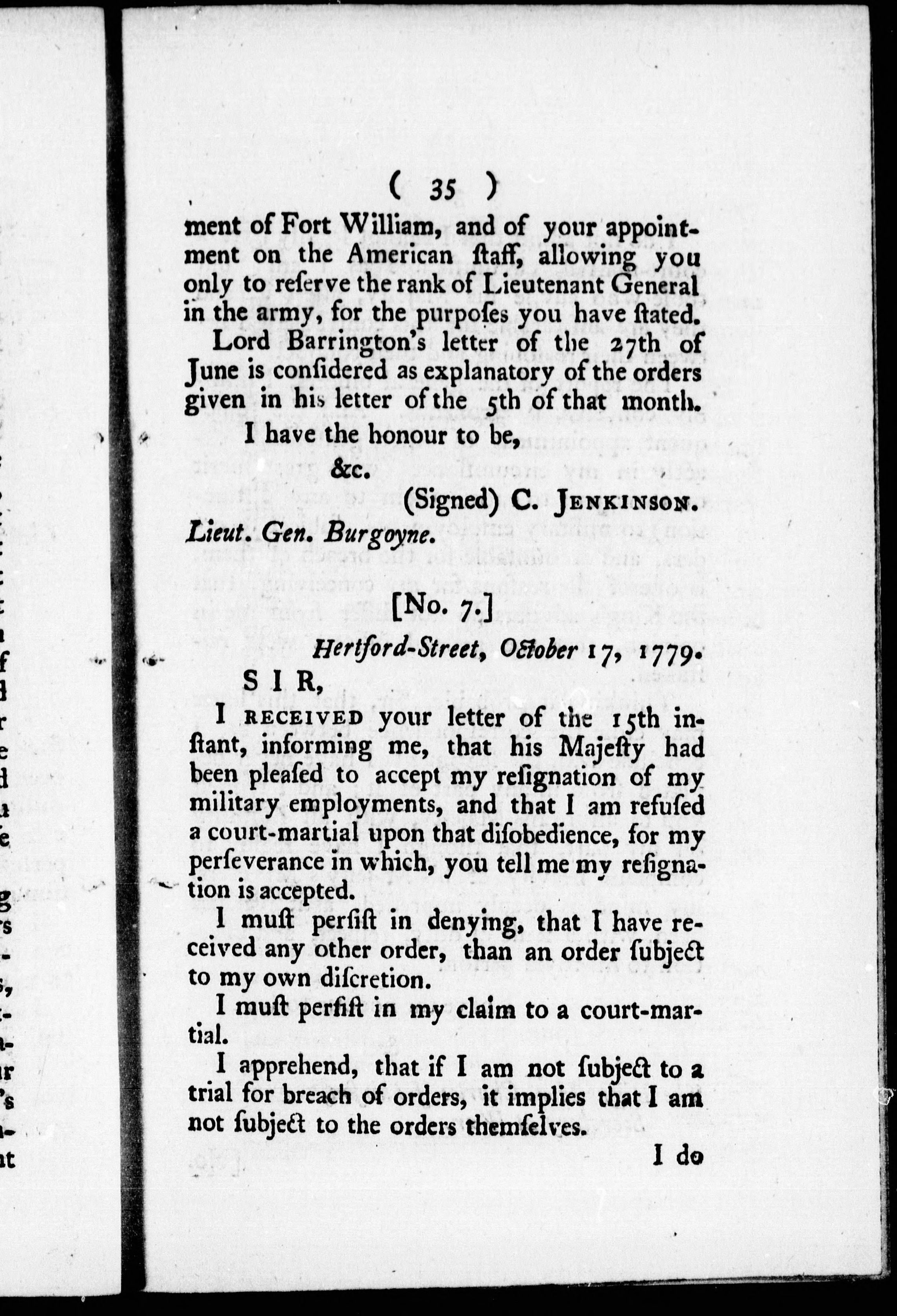 Appendix contains correspondence of Burgoyne to Lord Barrington and C. Jenkinson.