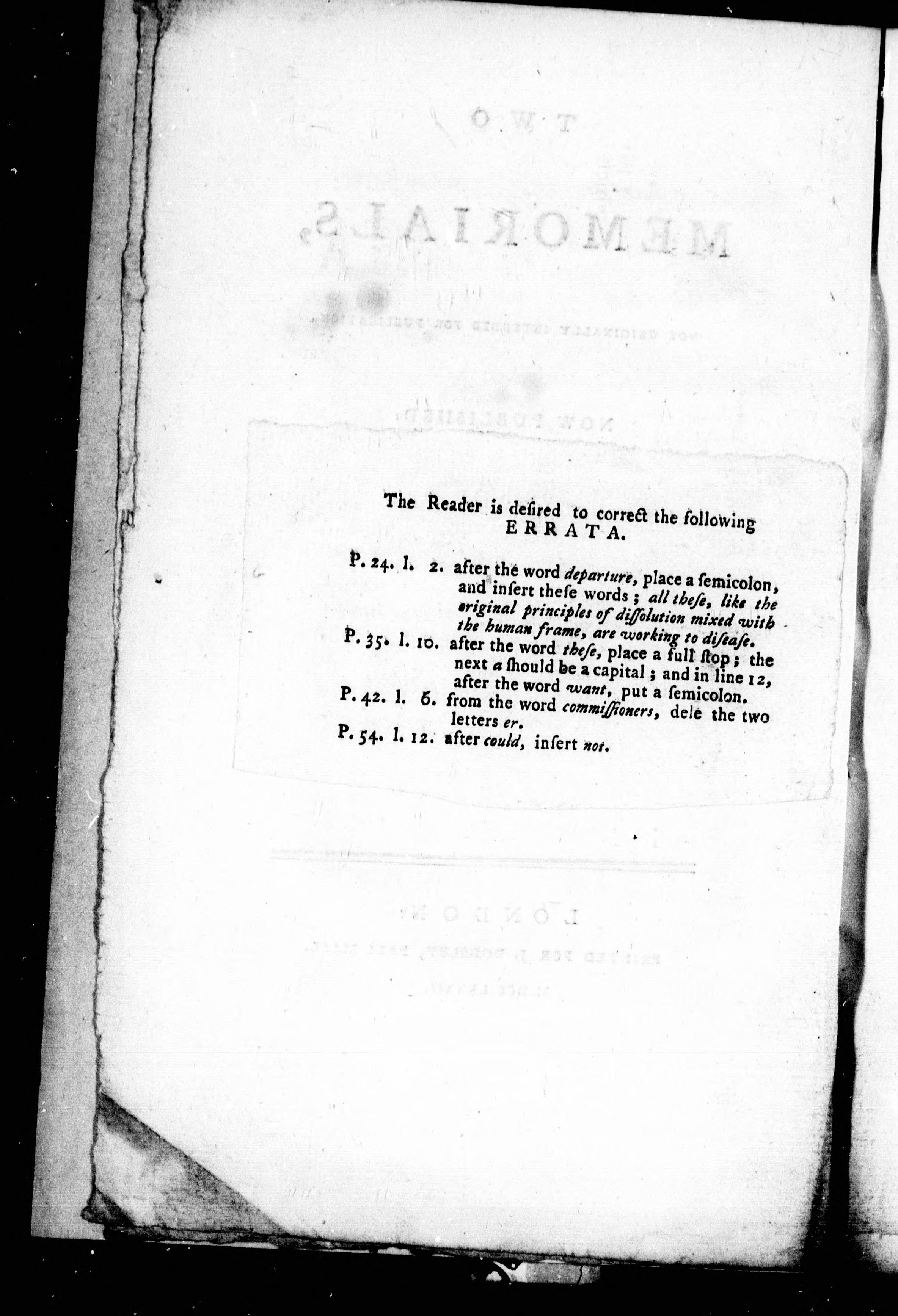 Two memorials, not originally intended for publication, now published : with an explanatory preface