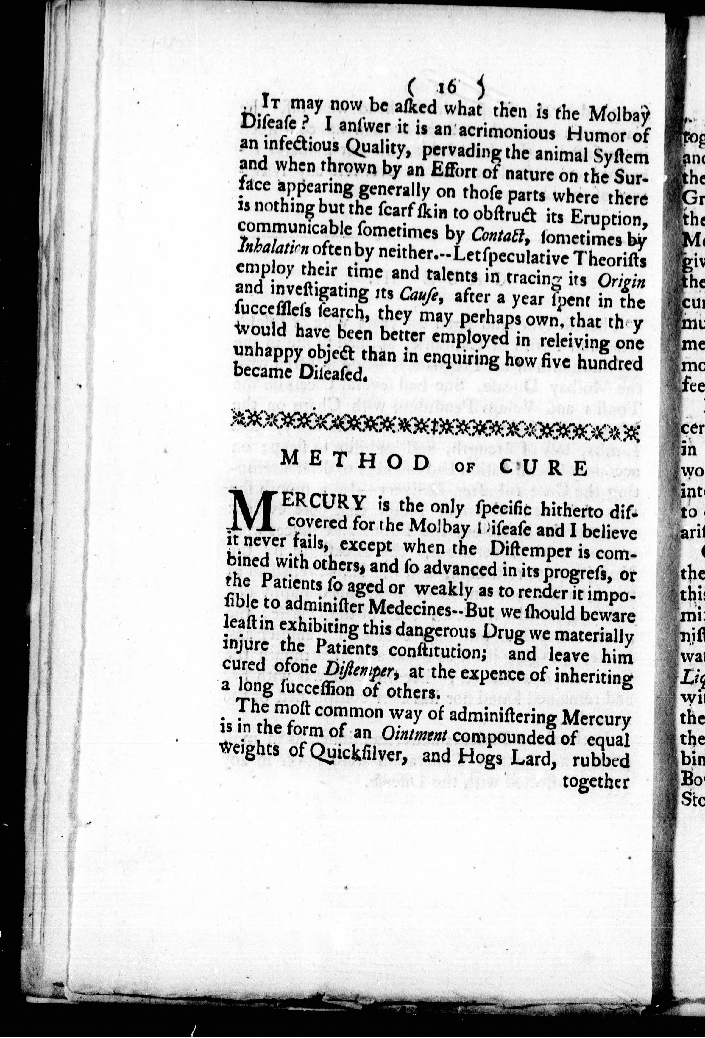 - Remarks on the distemper generally known by the name of the Molbay disease : including a description of its symptoms and method of cure chiefly intended for the use of the clerical and other gentlemen residing in the country
