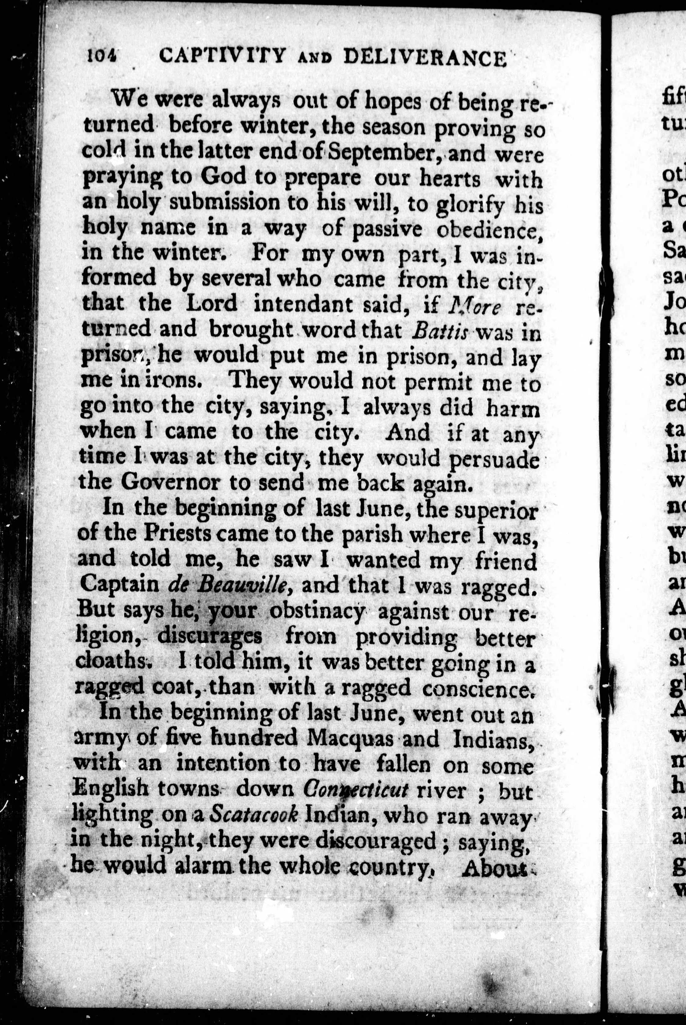 The captivity and deliverance of Mr. John Williams, pastor of the church in Deerfield, and Mrs. Mary Rowlandson, of Lancaster :