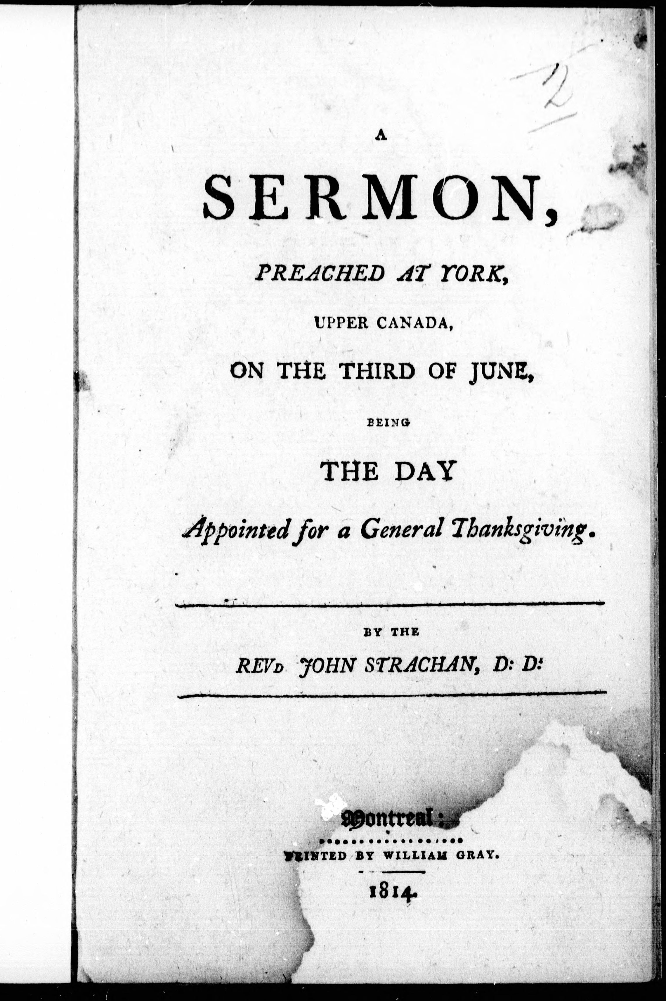 - A sermon, preached at York, Upper Canada, on the third of June, being the day appointed for a general thanksgiving