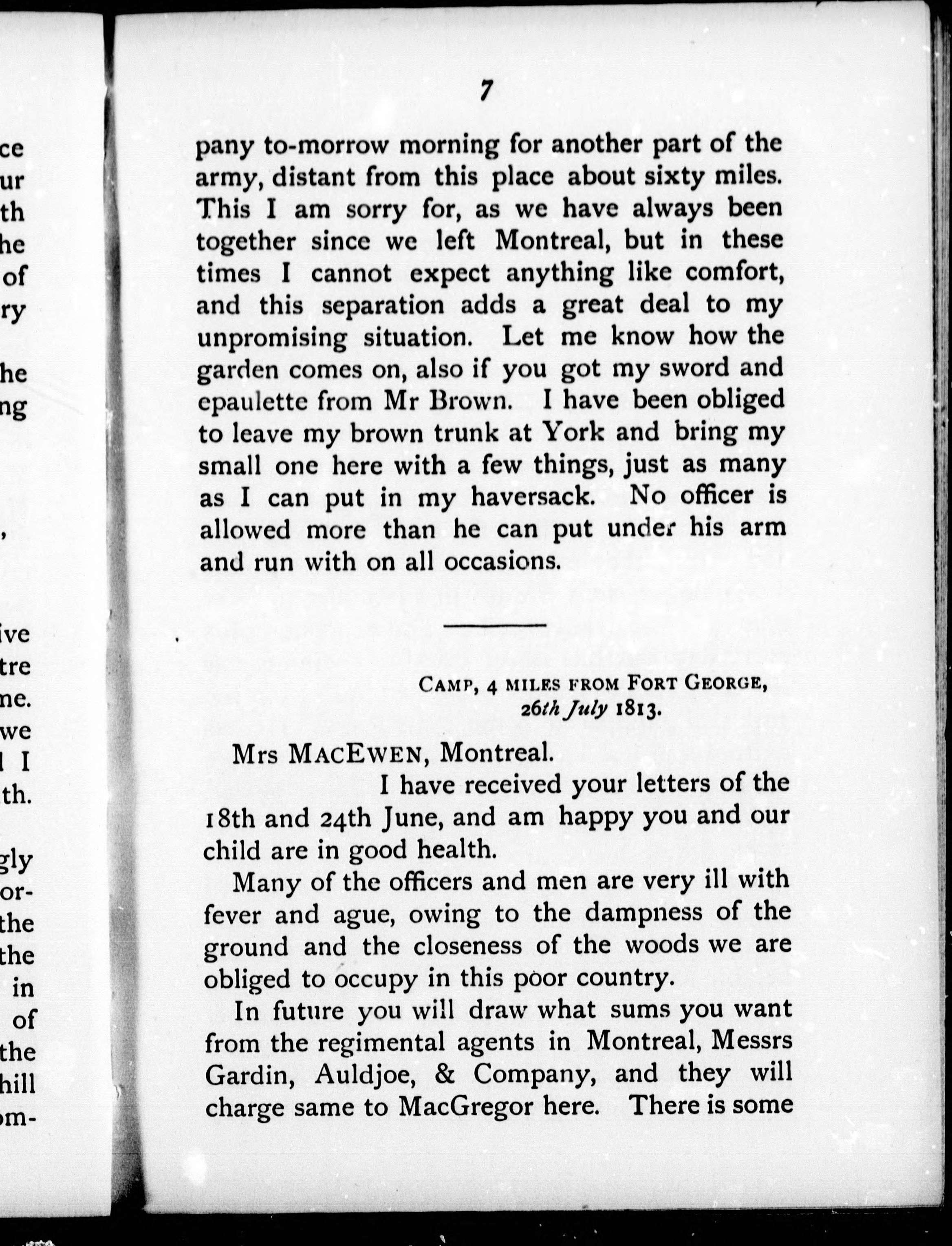 - Excerpts from letters from Lieut. and Adjutant William MacEwen, 1st Battalion Royal Scots to his wife : Canada, 1813-14.