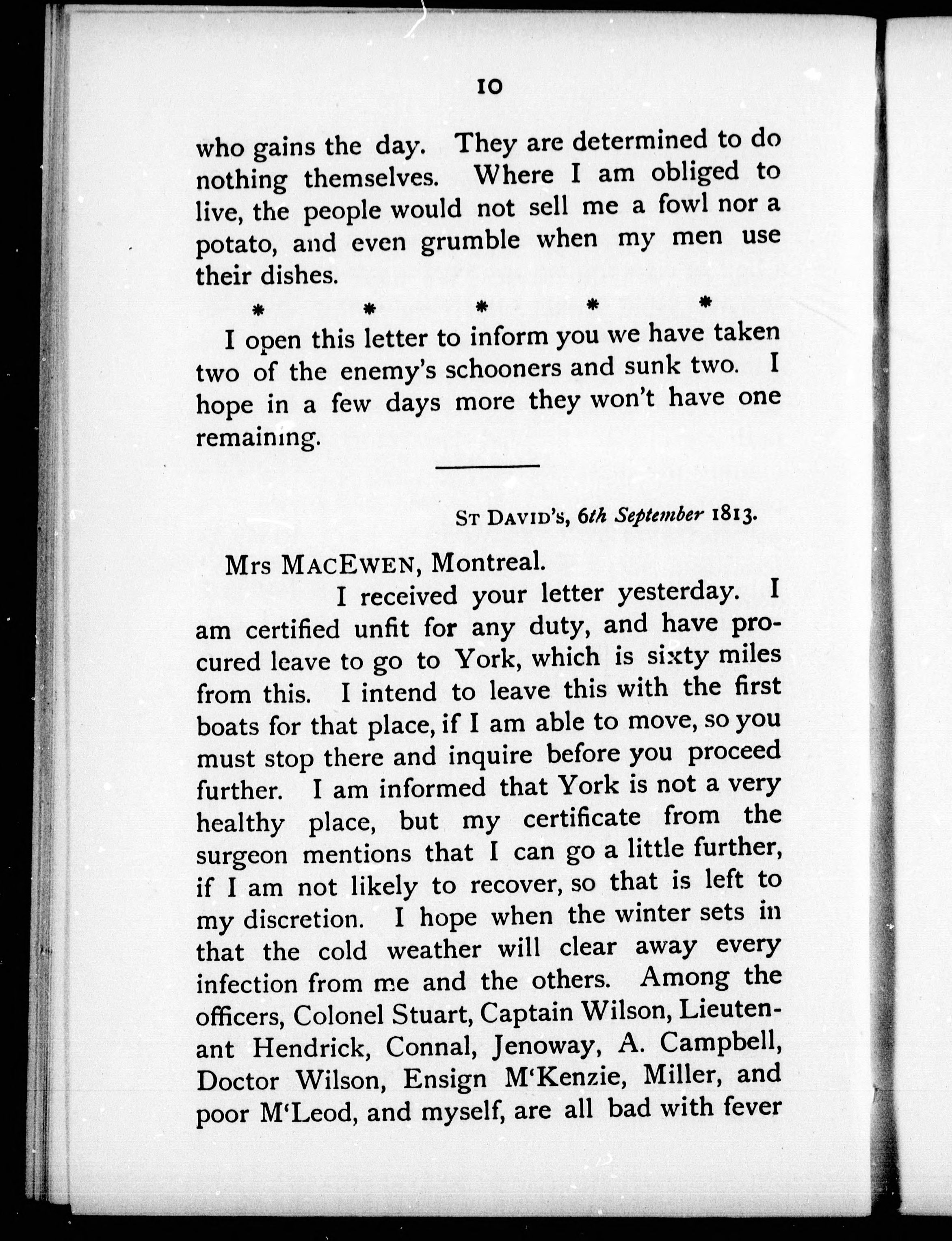 - Excerpts from letters from Lieut. and Adjutant William MacEwen, 1st Battalion Royal Scots to his wife : Canada, 1813-14.