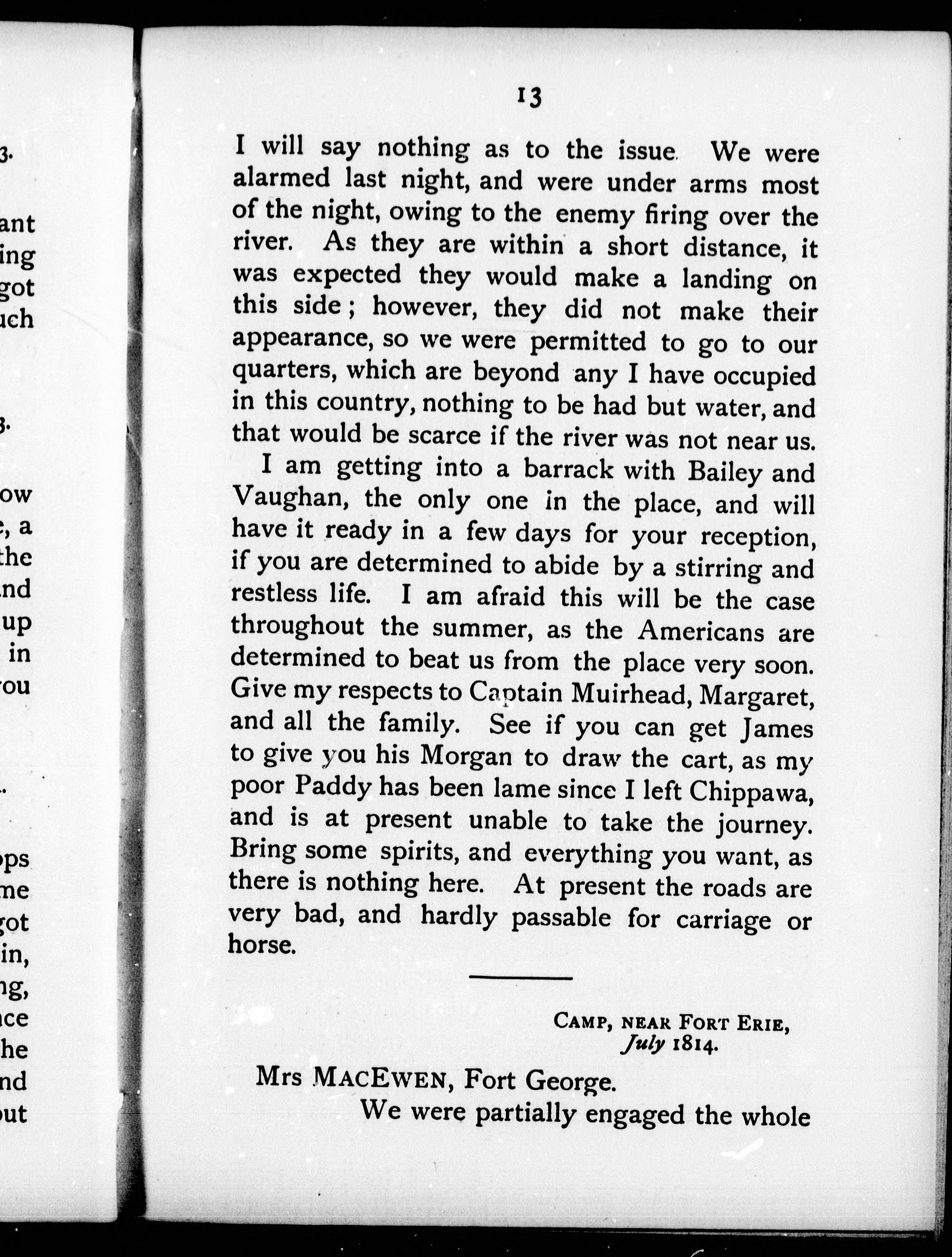 - Excerpts from letters from Lieut. and Adjutant William MacEwen, 1st Battalion Royal Scots to his wife : Canada, 1813-14.