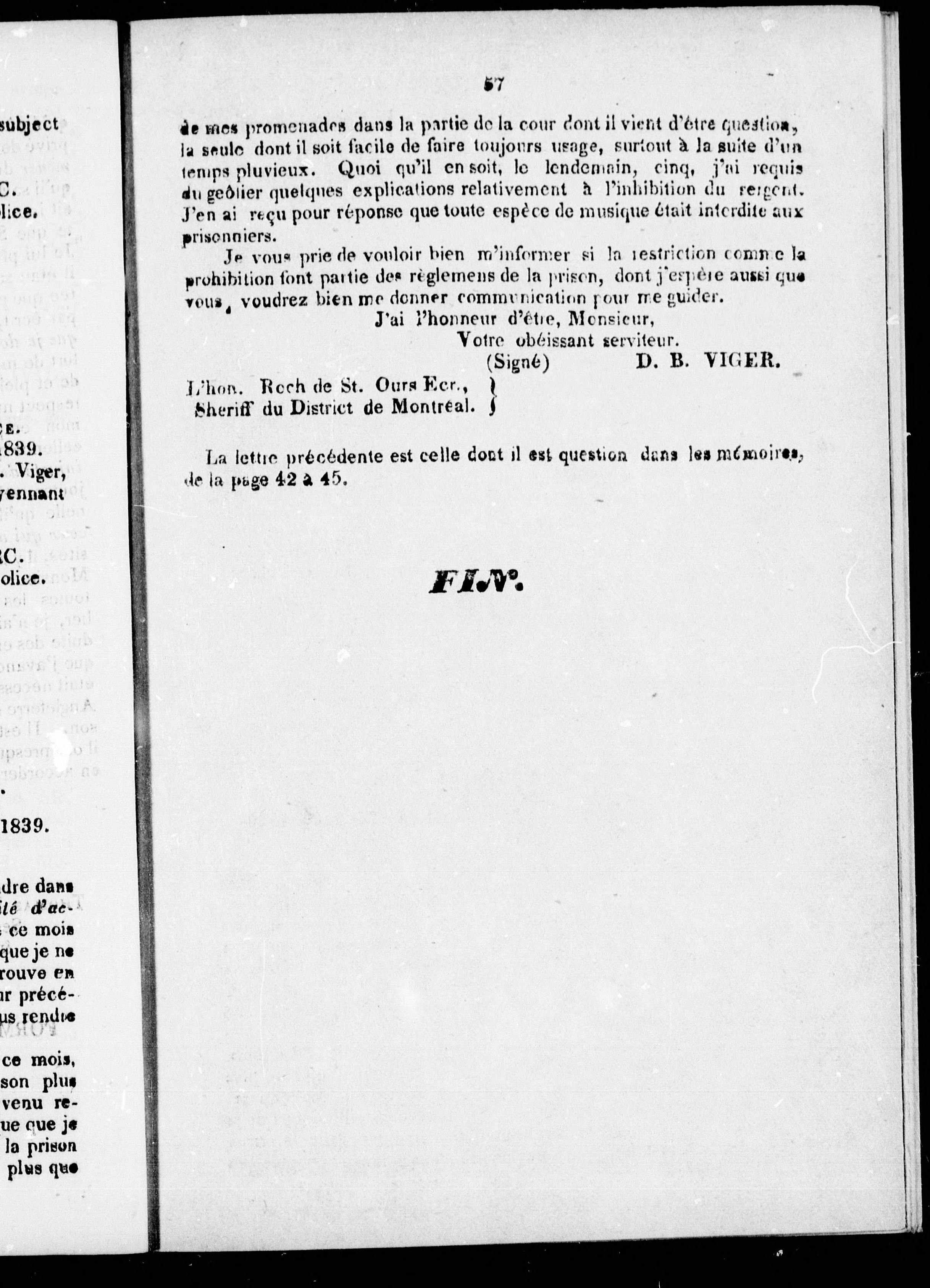- Mémoires relatifs à l'emprisonnement de l'Honorable D.B. Viger.