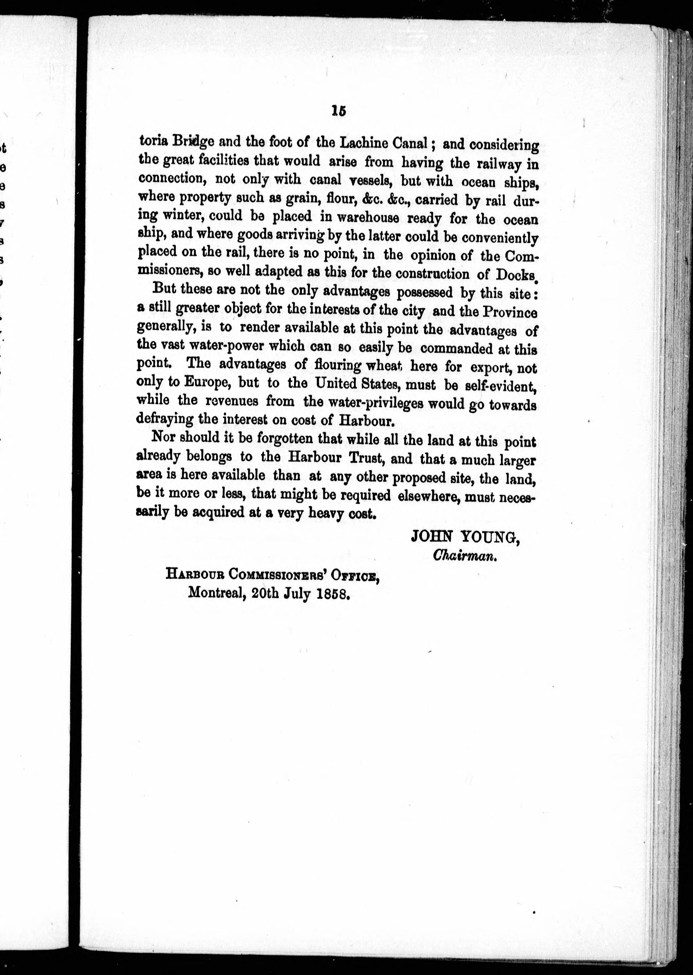 - Reports on the means of improving the present harbour and the construction of docks at Montreal