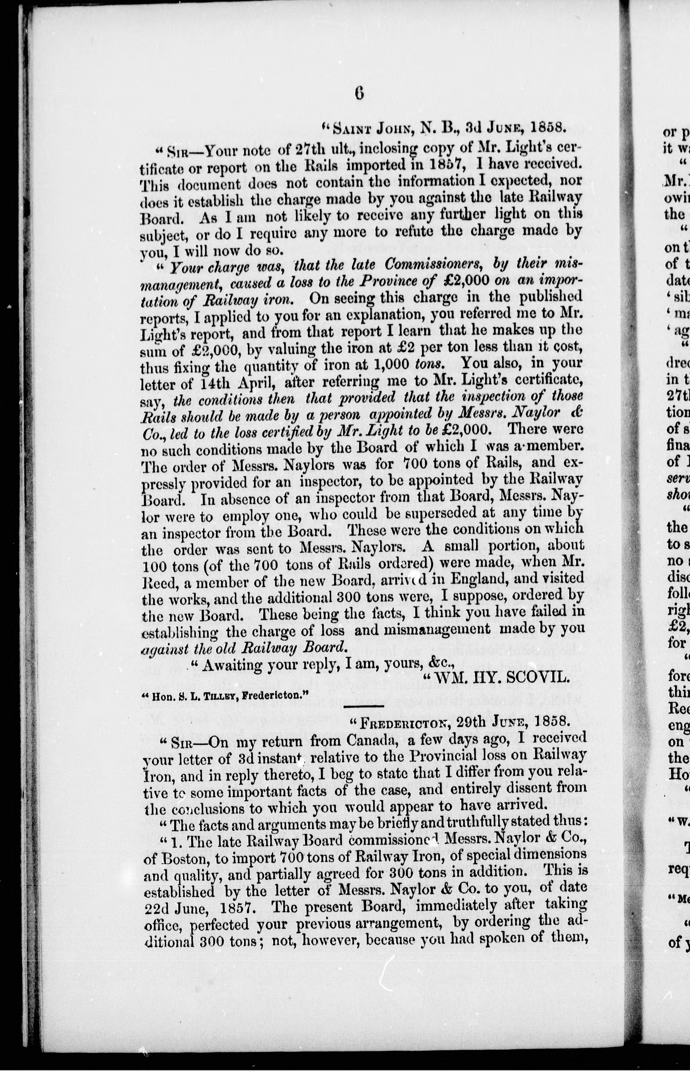 - Reply to a pamphlet published by Wm. Hy. Scovil, Esquire : purporting to contain a correspondence between him and the provincial secretary relative to the alleged loss sustained by the province on one thounsand tons of iron, imported through Messrs. Naylor & Co., in 1857