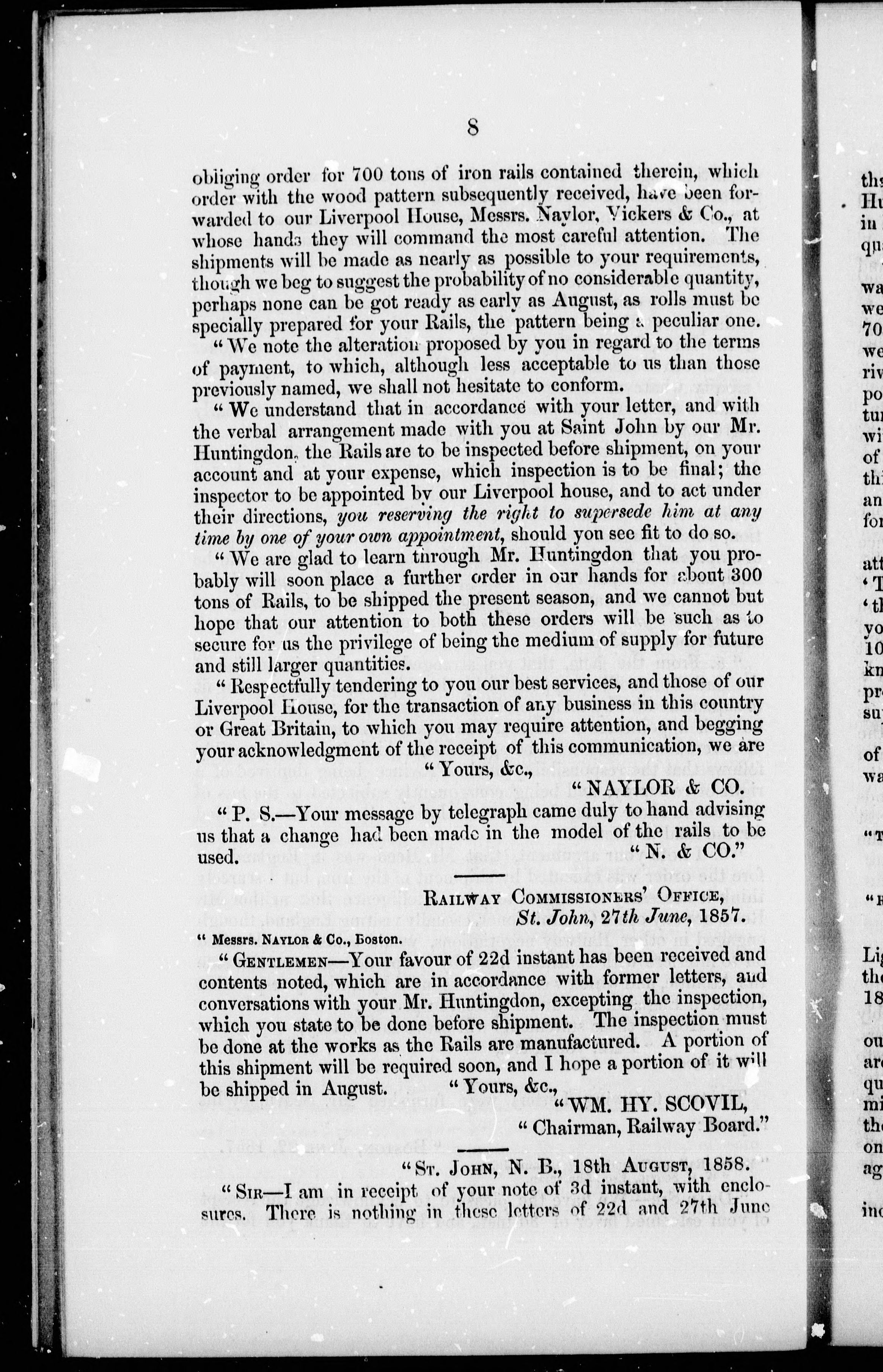 - Reply to a pamphlet published by Wm. Hy. Scovil, Esquire : purporting to contain a correspondence between him and the provincial secretary relative to the alleged loss sustained by the province on one thounsand tons of iron, imported through Messrs. Naylor & Co., in 1857