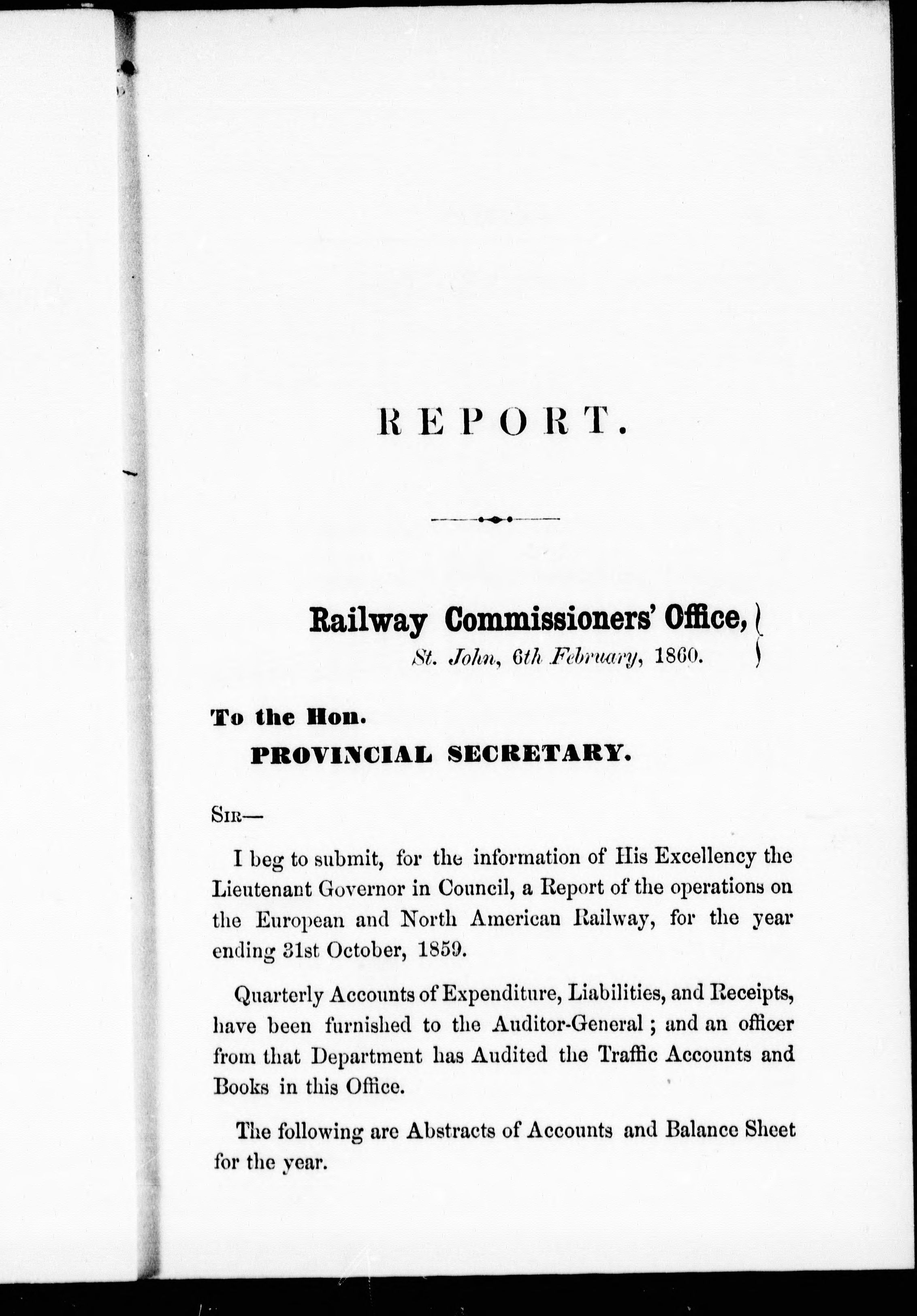 Report of the Railway Commissioners of the province of New Brunswick for the year 1859.
