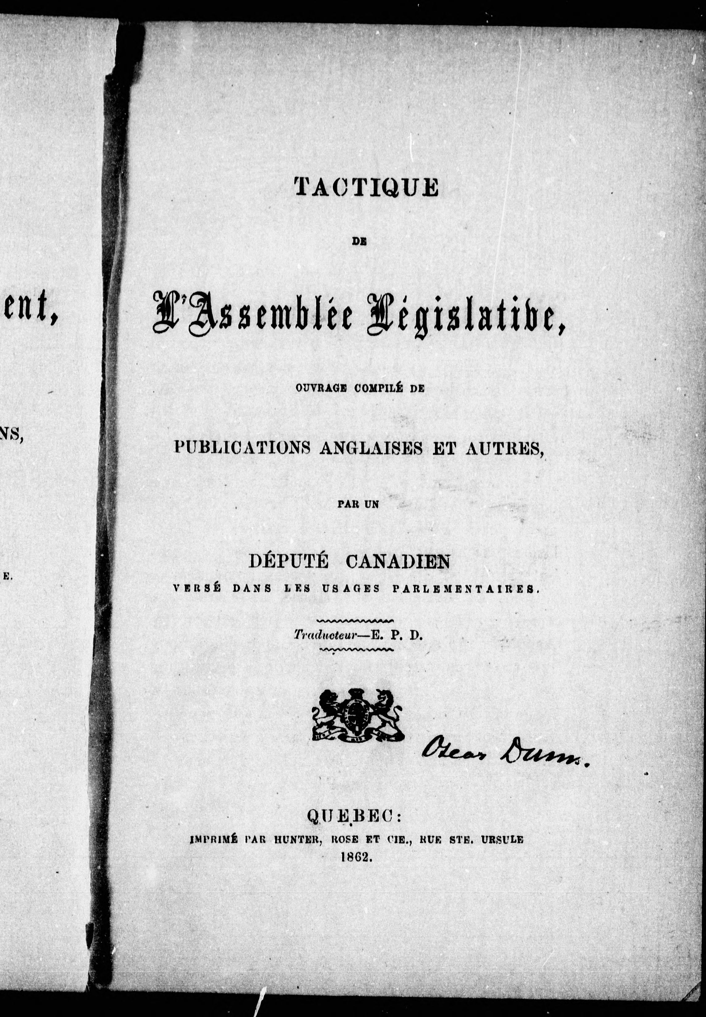 [Quebec? : publisher not identified], 1862.; 79 images, 77 avec recherche en texte intégral