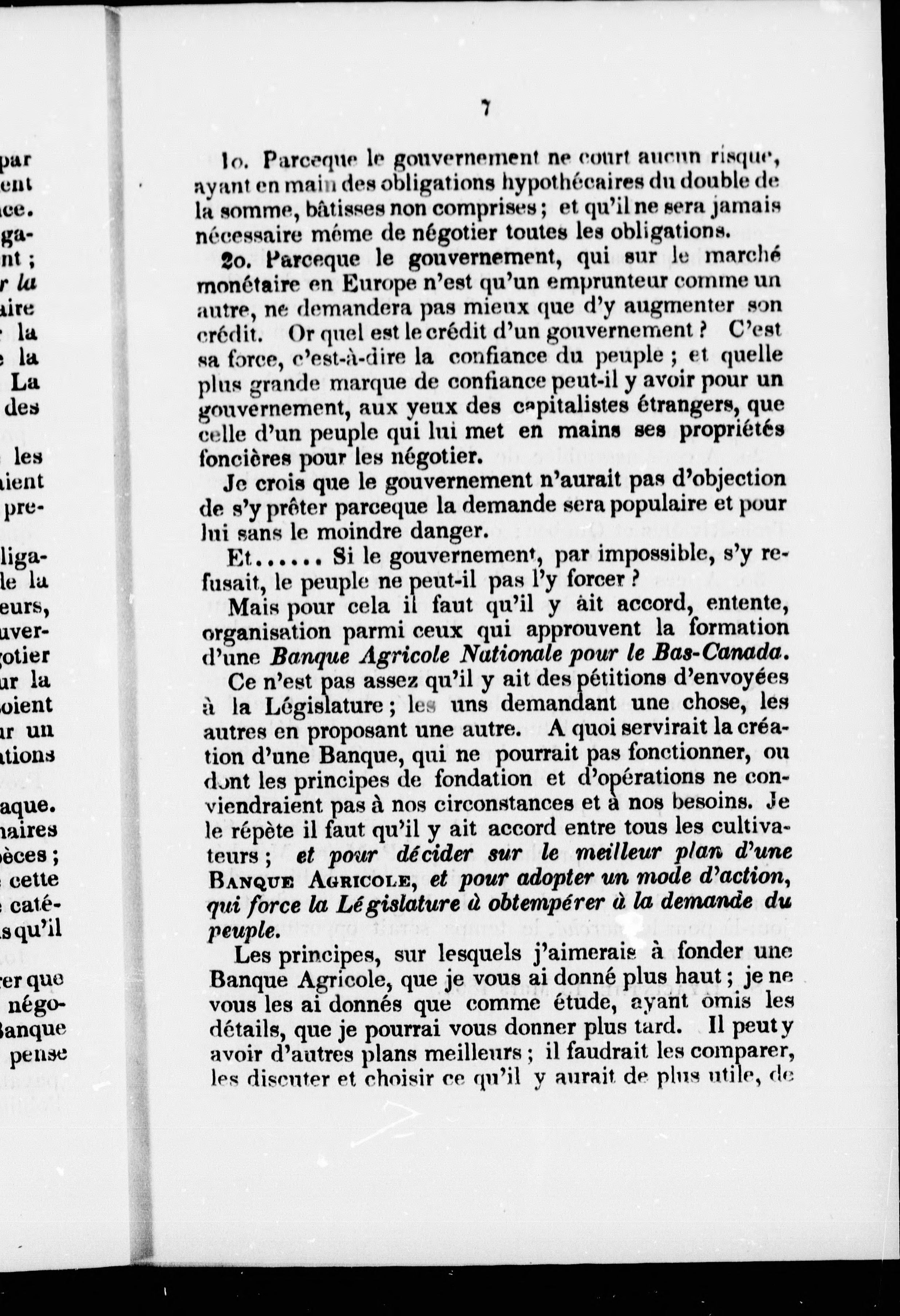 Projet d'étude pour la formation d'une banque agricole nationale pour le Bas-Canada /