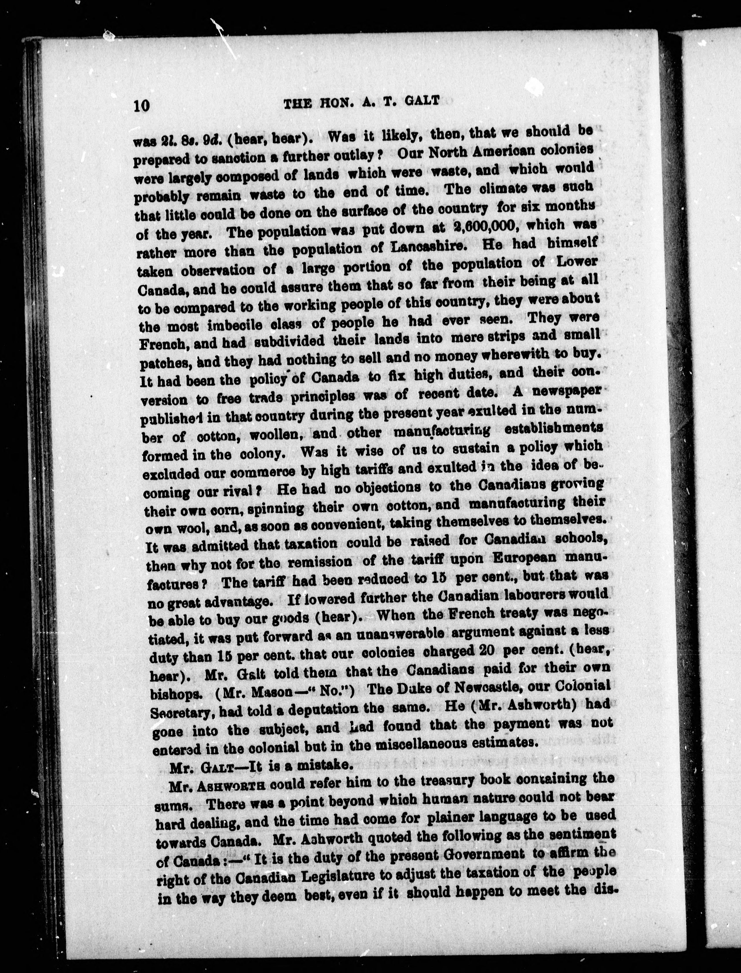 - Speech of the Hon. A.T. Galt, at the Chamber of Commerce, Manchester, September 25, 1862.