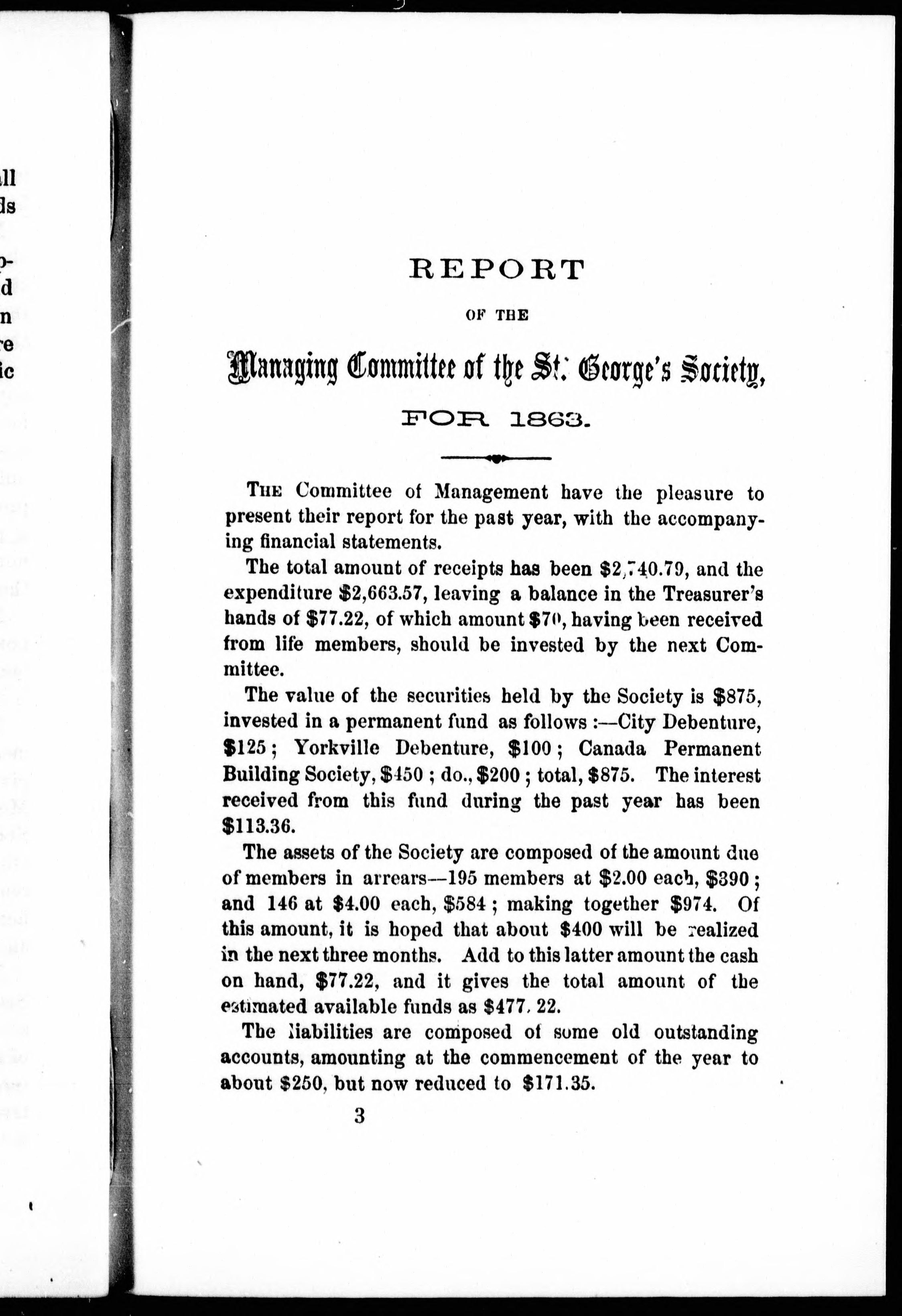 Charter and by-laws of the St. George's Society of Toronto, instituted for the relief of sick and destitute Englishmen and their descendants : established 1836, incorporated 1858 : to which is added the report of the committee for 1863, together with a list of officers and members.