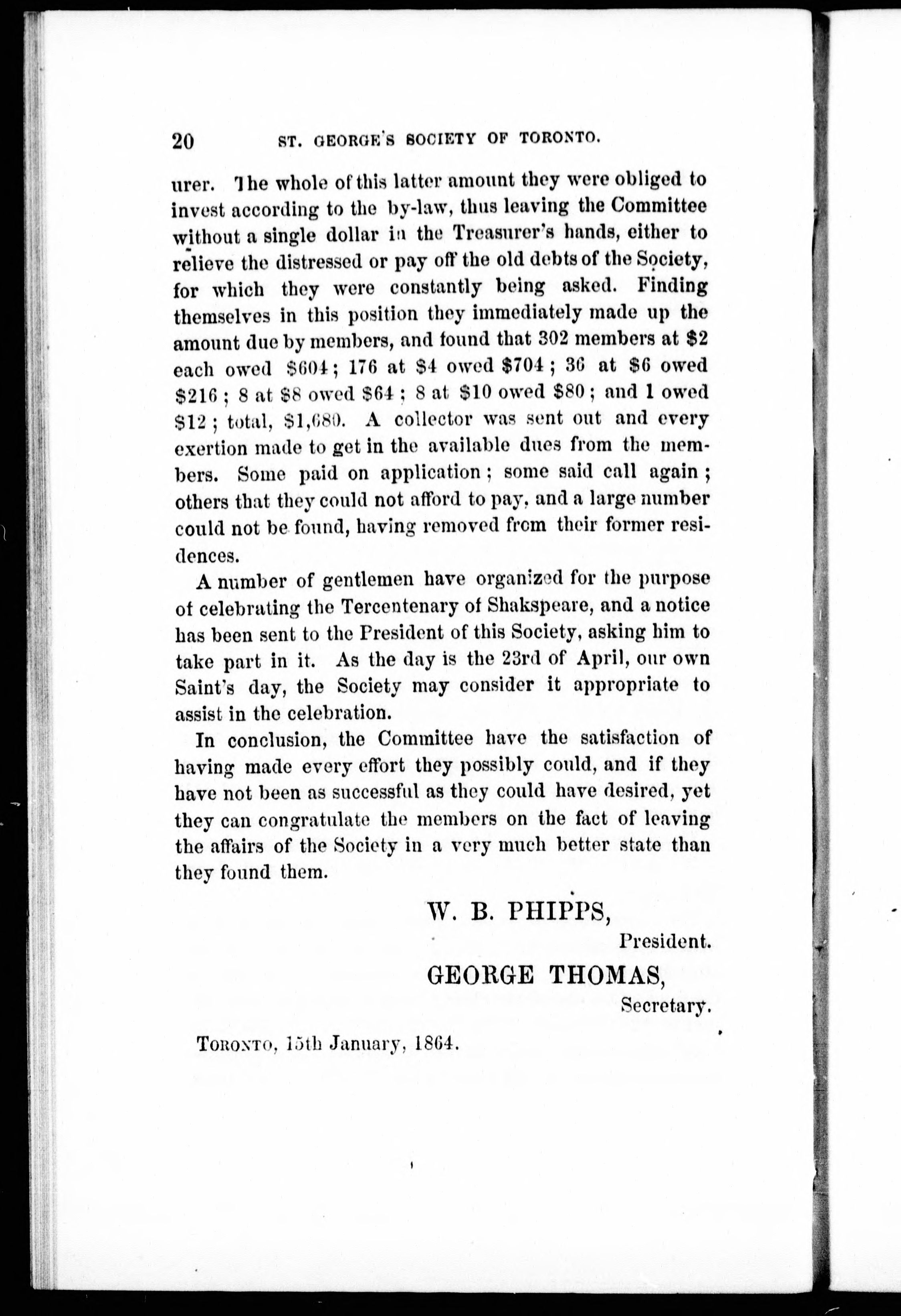 Charter and by-laws of the St. George's Society of Toronto, instituted for the relief of sick and destitute Englishmen and their descendants : established 1836, incorporated 1858 : to which is added the report of the committee for 1863, together with a list of officers and members.