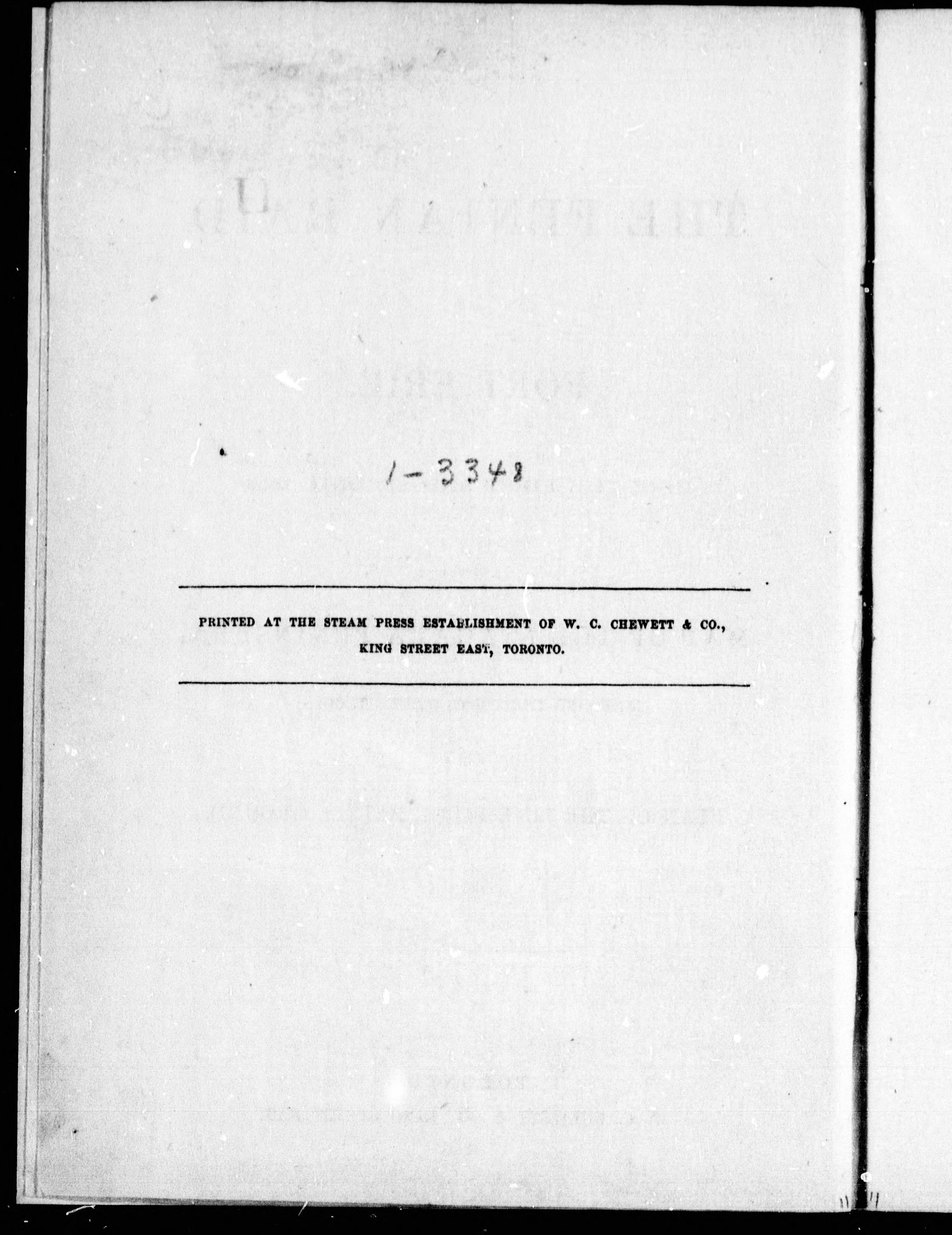 Cover title: The Fenian raid into Canada, June, 1866, with a map of the Niagara Peninsula.