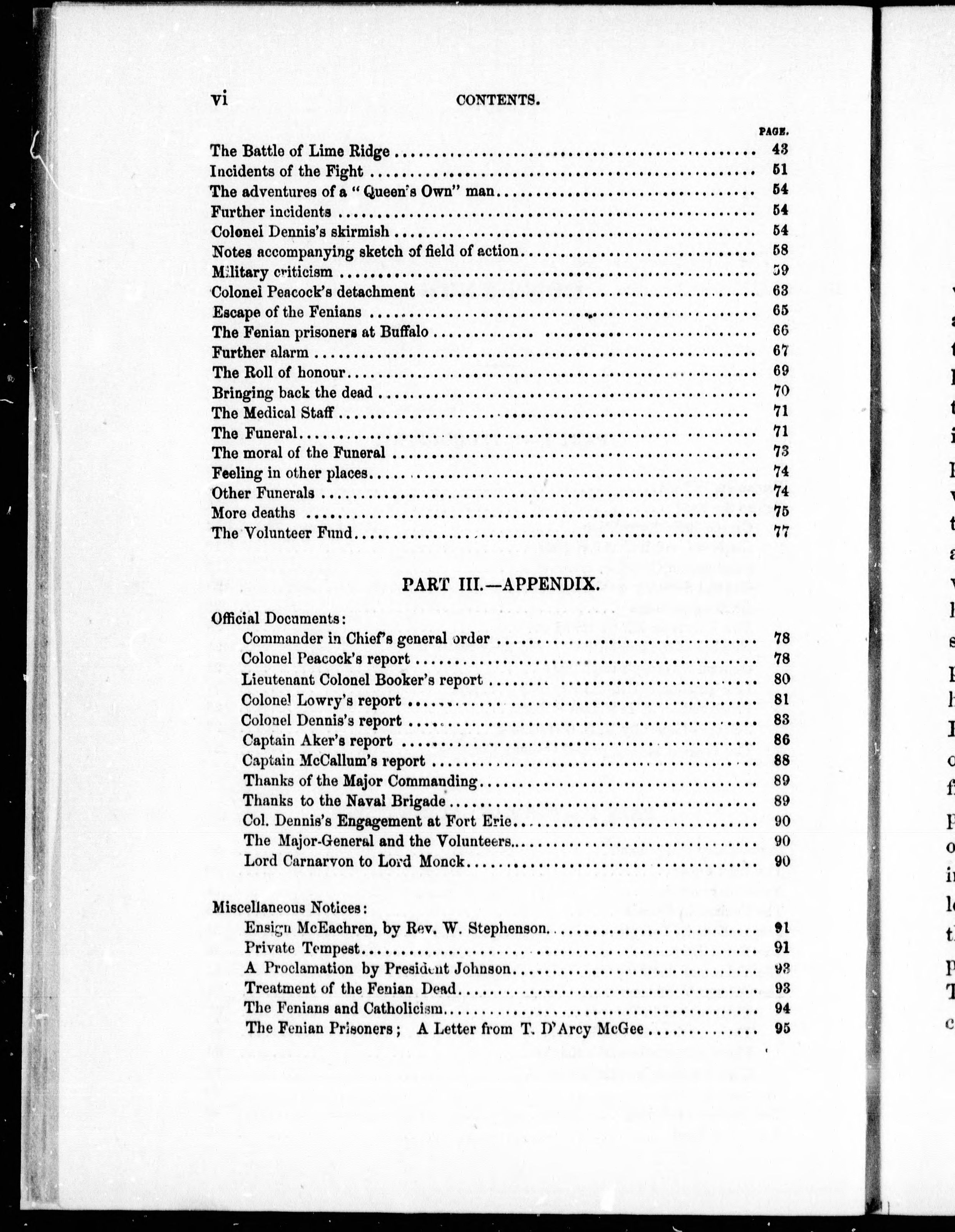 - The Fenian raid at Fort Erie, June the first and second, 1866 : with a map of the Niagara Peninsula, shewing the route of the troops, and a plan of the Lime Ridge battle ground.