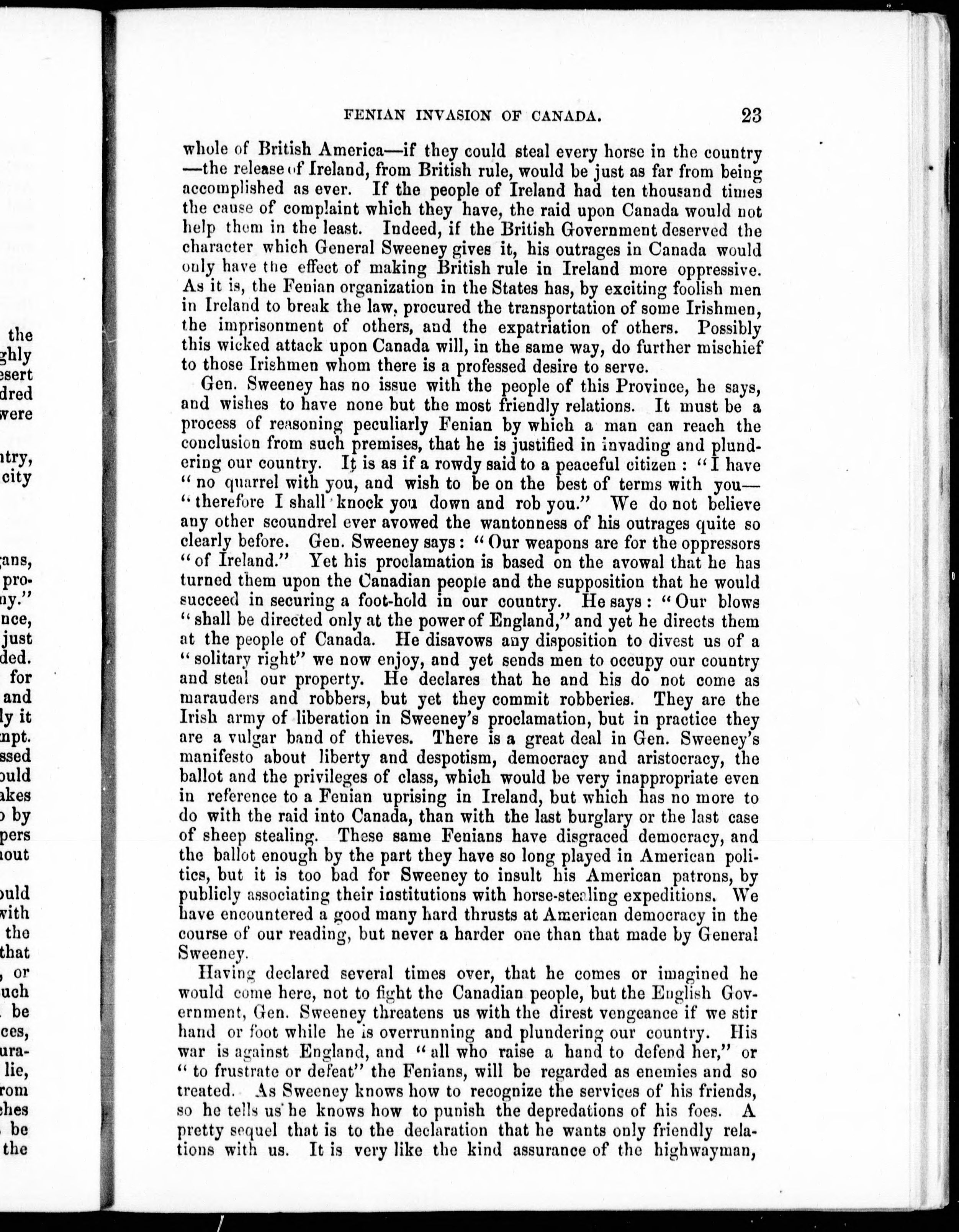 Cover title: The Fenian raid into Canada, June, 1866, with a map of the Niagara Peninsula.
