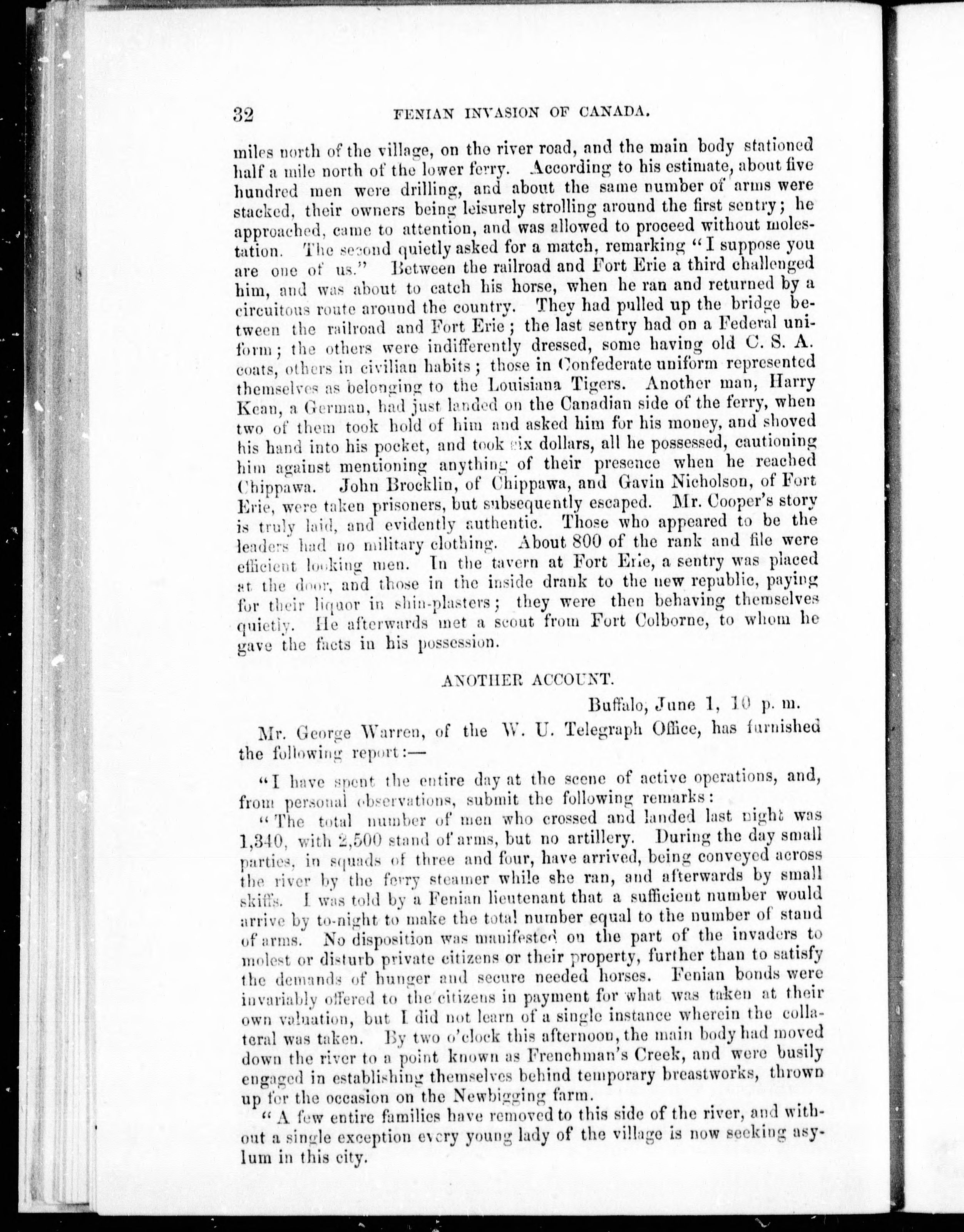 Fort Érié (Ont.) -- Prise, 1866. - Document original