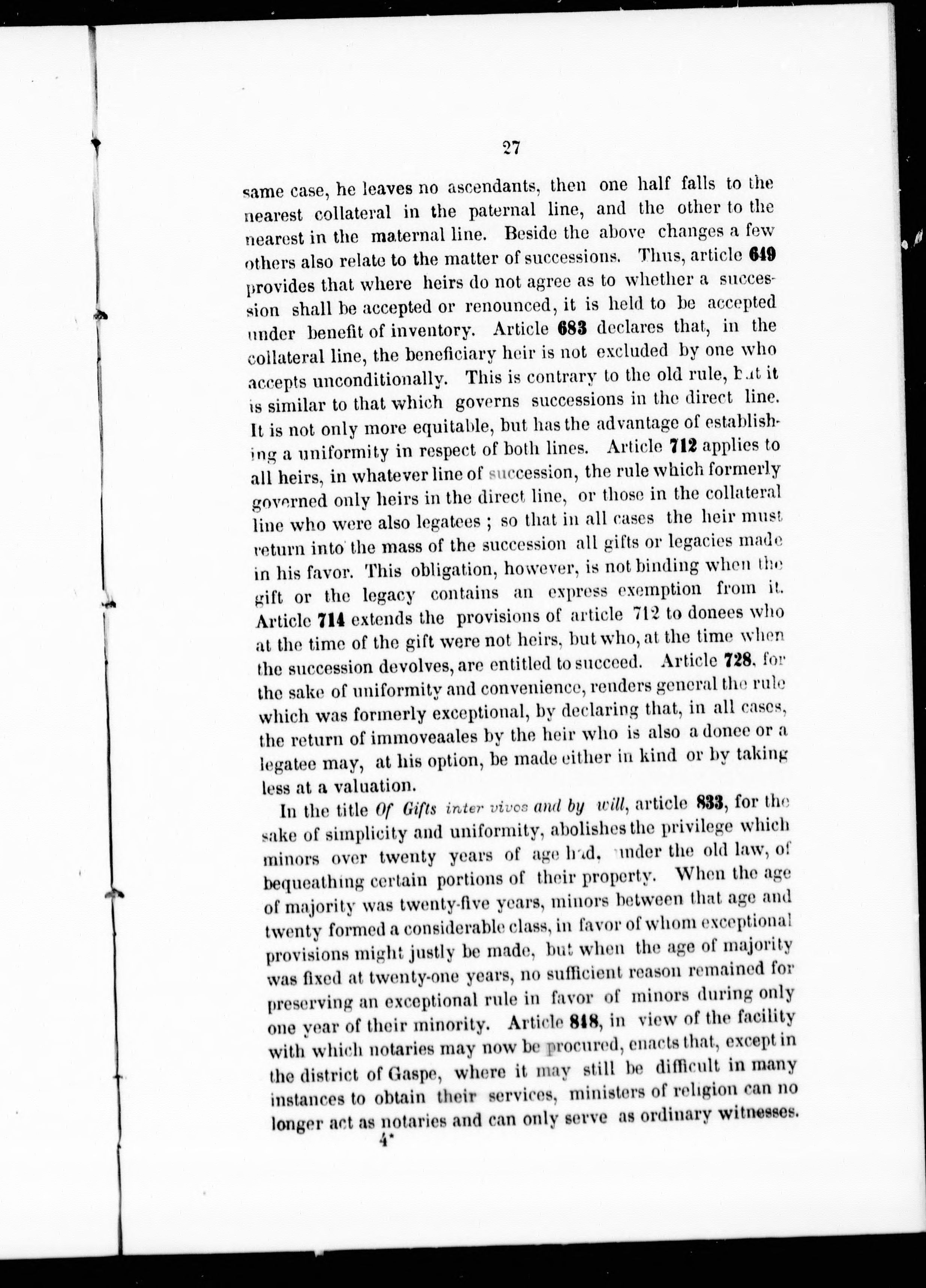 - Synopsis of the changes in the law effected by the Civil Code of Lower Canada