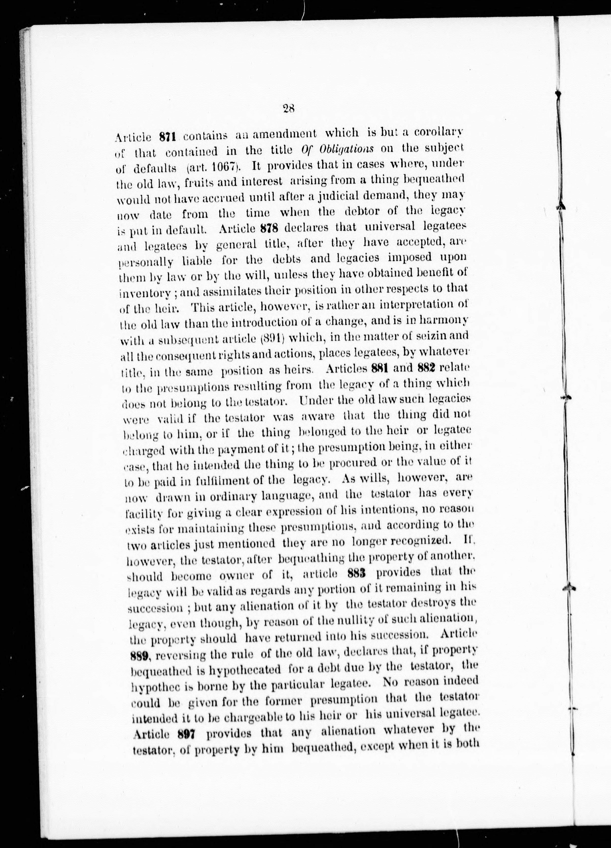 - Synopsis of the changes in the law effected by the Civil Code of Lower Canada