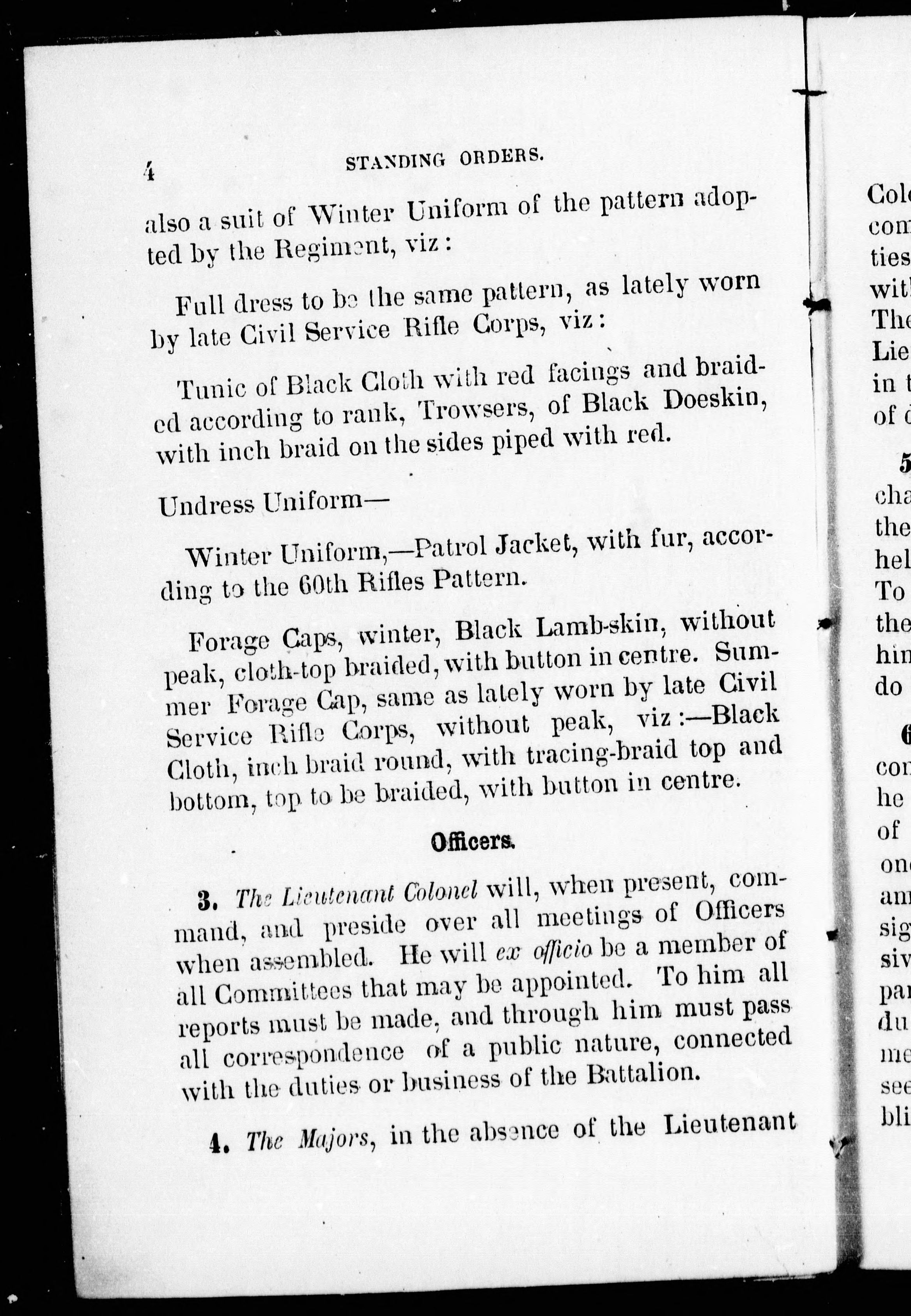 - Standing orders of the Civil Service Rifle Regiment : (as adopted at a meeting of the officers, held at Ottawa, on the 26th October, 1866.).