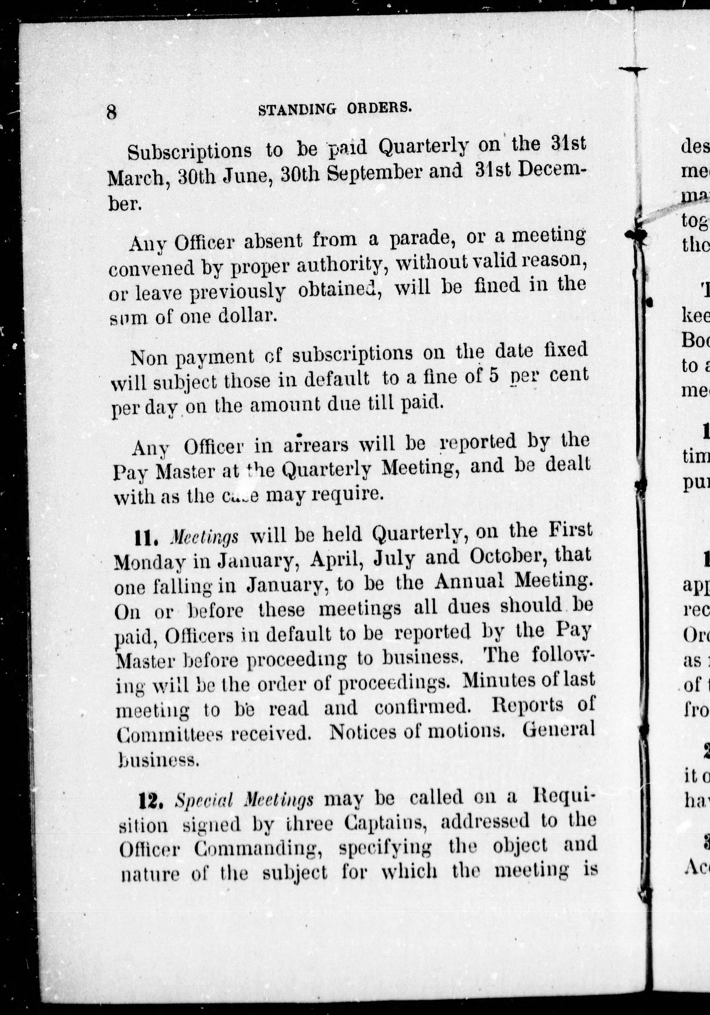 Standing orders of the Civil Service Rifle Regiment : (as adopted at a meeting of the officers, held at Ottawa, on the 26th October, 1866.).