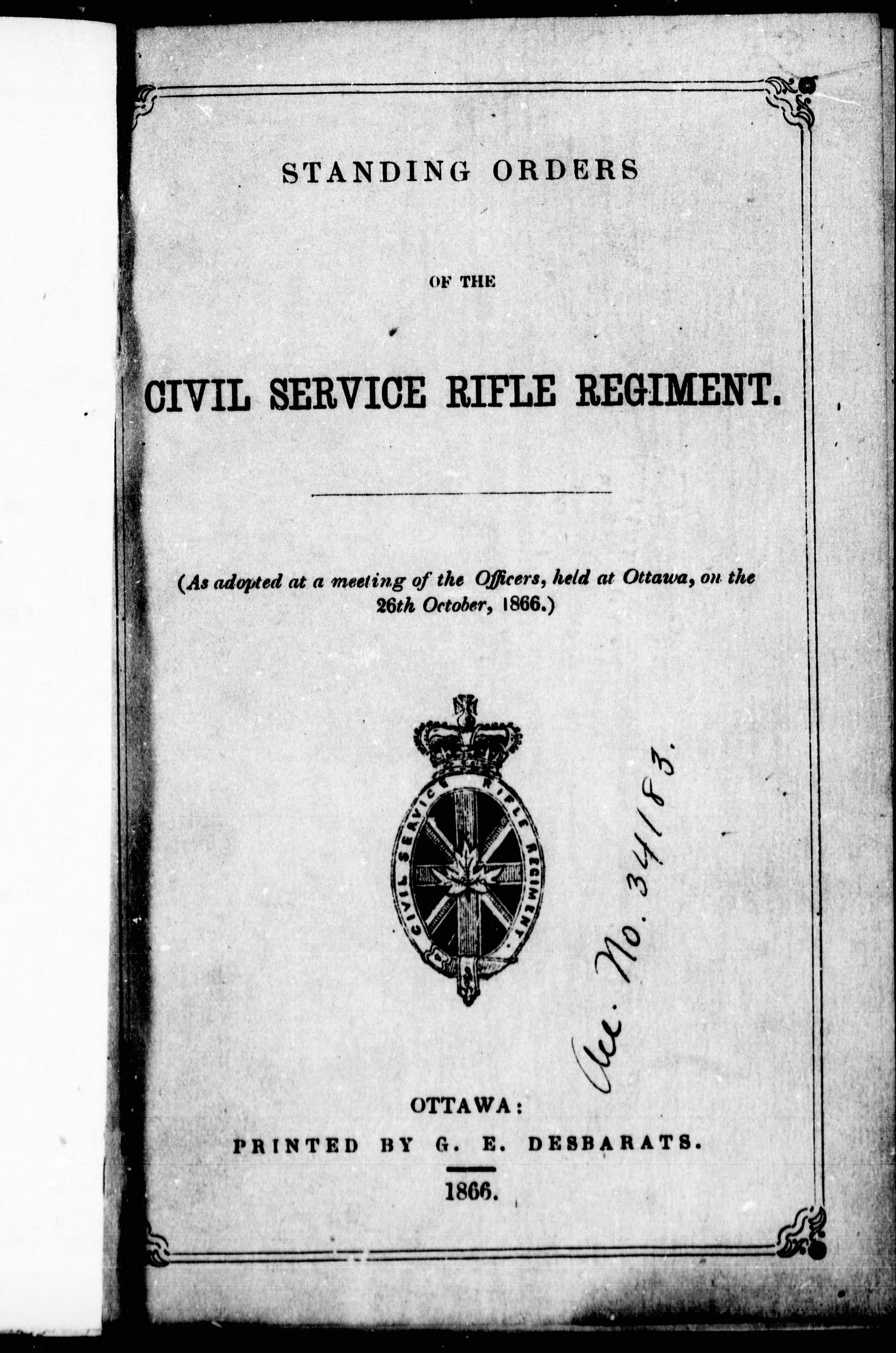 Standing orders of the Civil Service Rifle Regiment : (as adopted at a meeting of the officers, held at Ottawa, on the 26th October, 1866.).