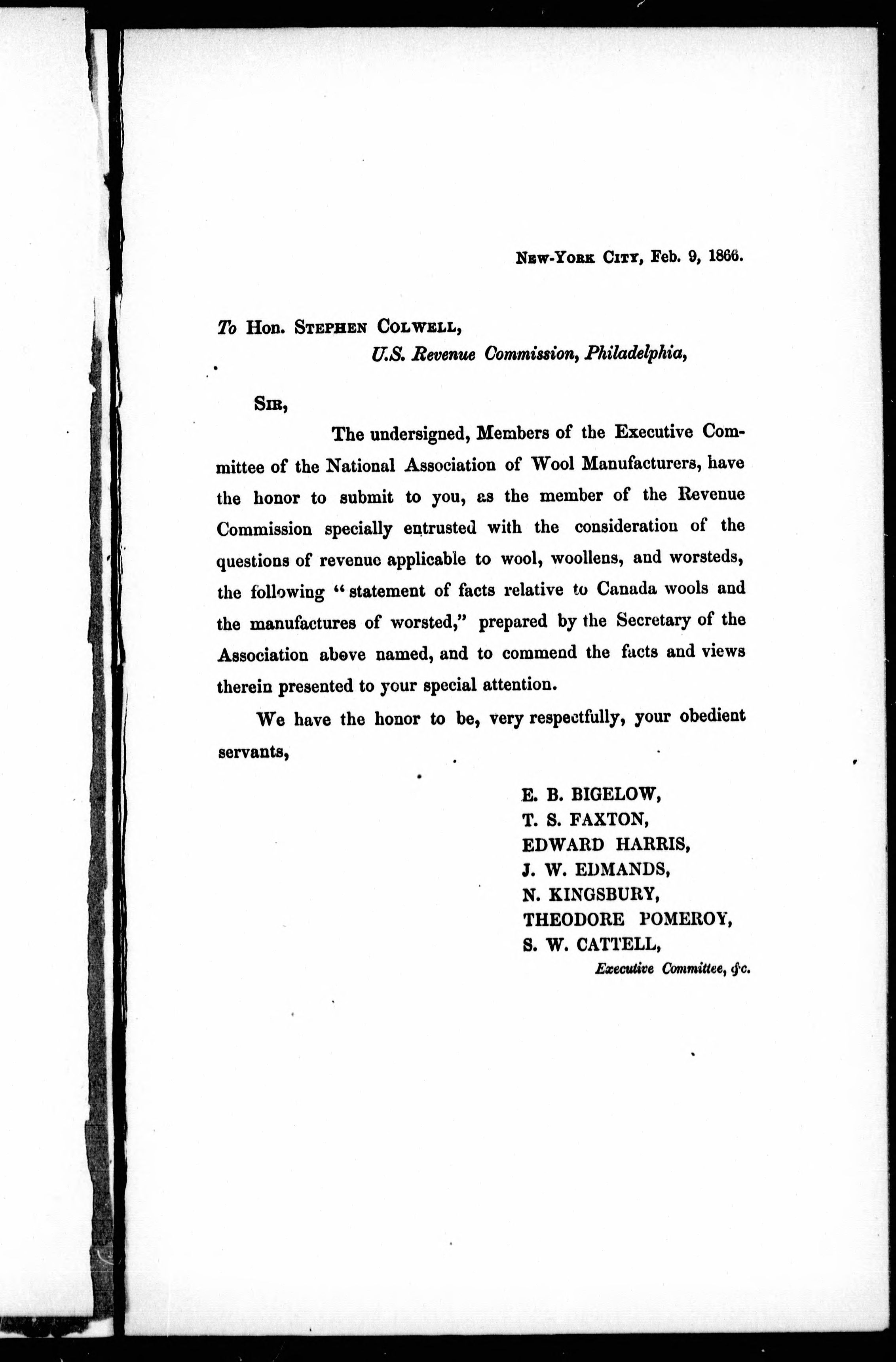 Statement of facts relative to Canada wools and the manufactures of worsted.