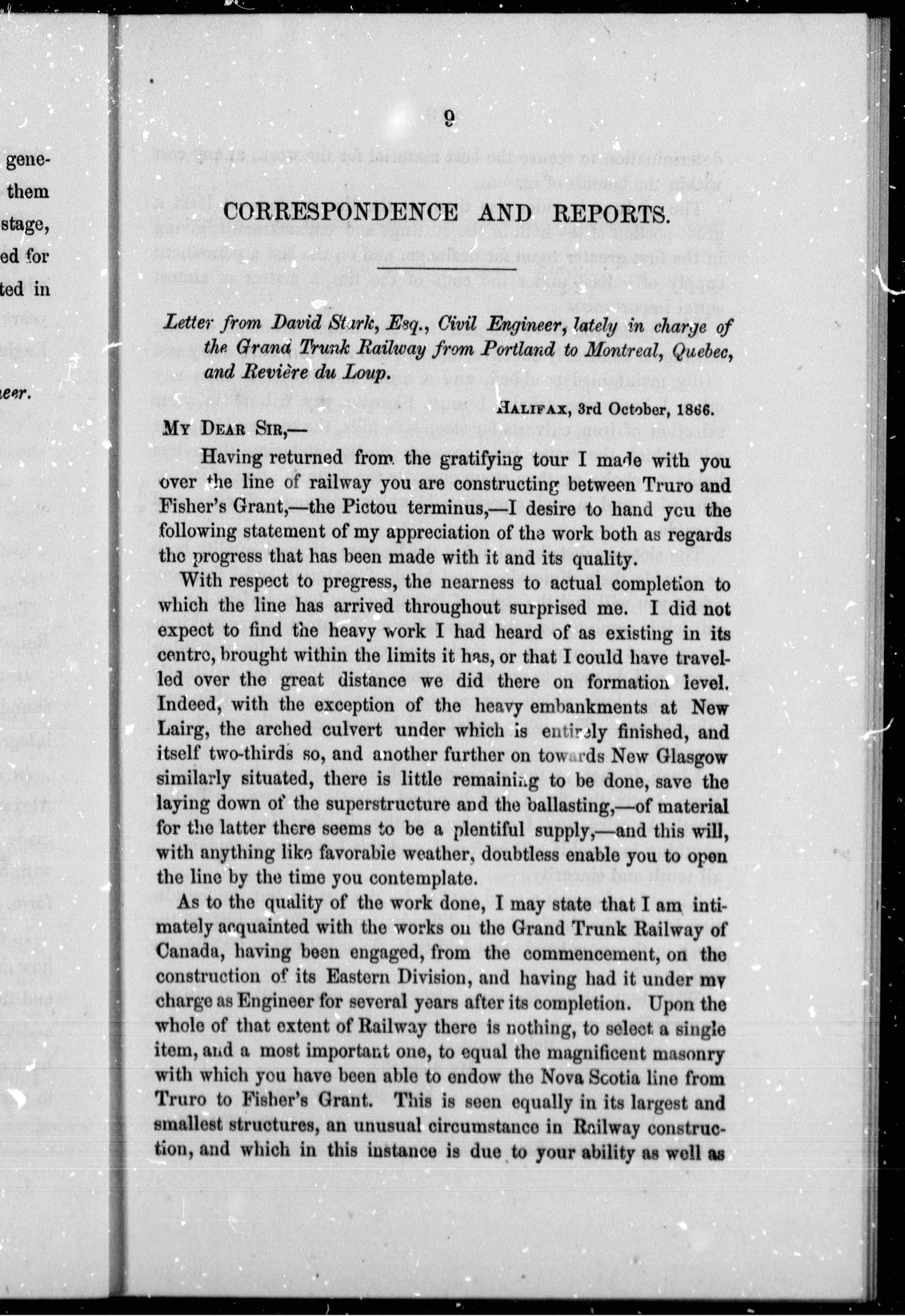 Opening of the Pictou railway, Nova Scotia : observations, correspondence, &c. submitted by Sandford Fleming, civil engineer, May 31st, 1867.