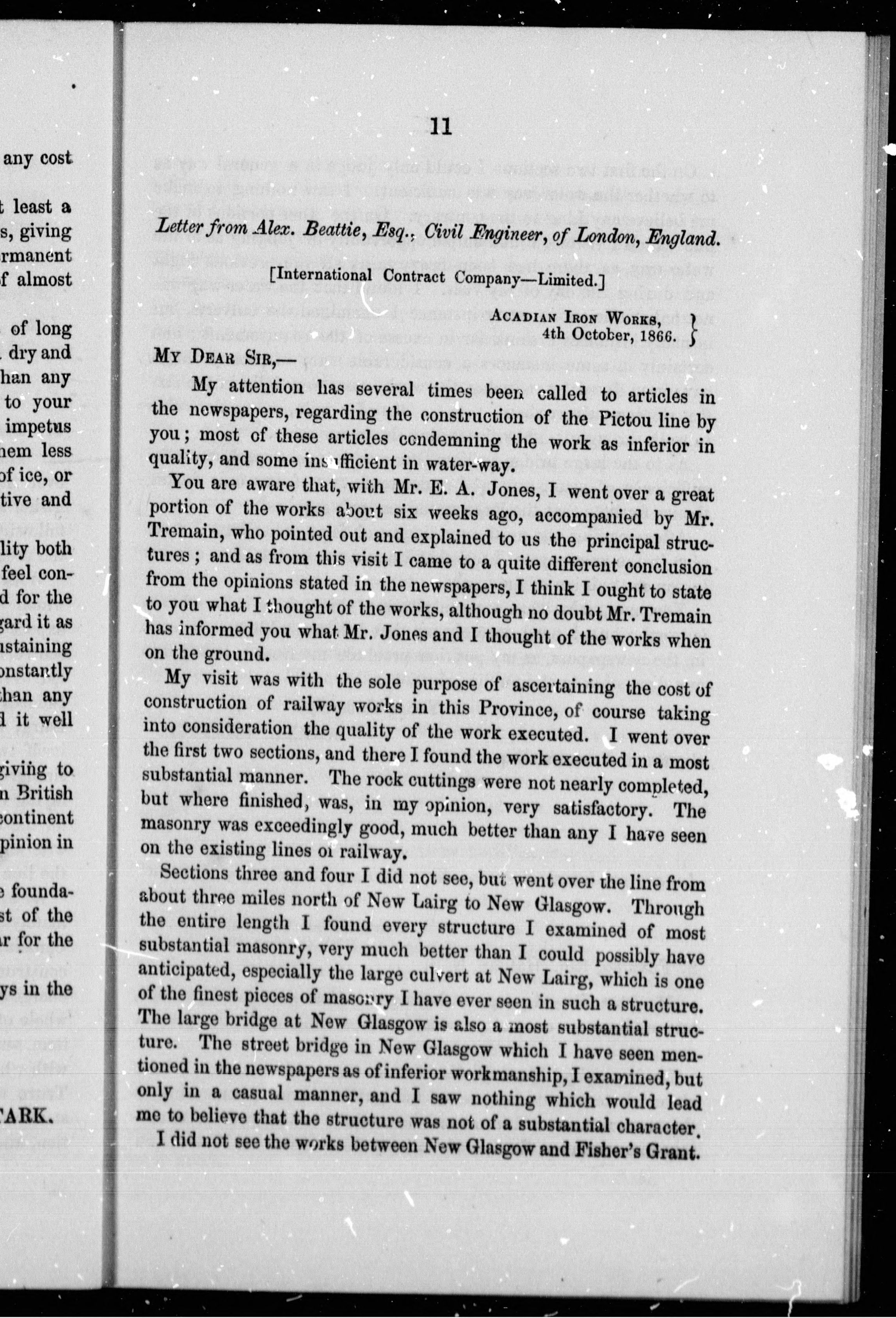 Opening of the Pictou railway, Nova Scotia : observations, correspondence, &c. submitted by Sandford Fleming, civil engineer, May 31st, 1867.