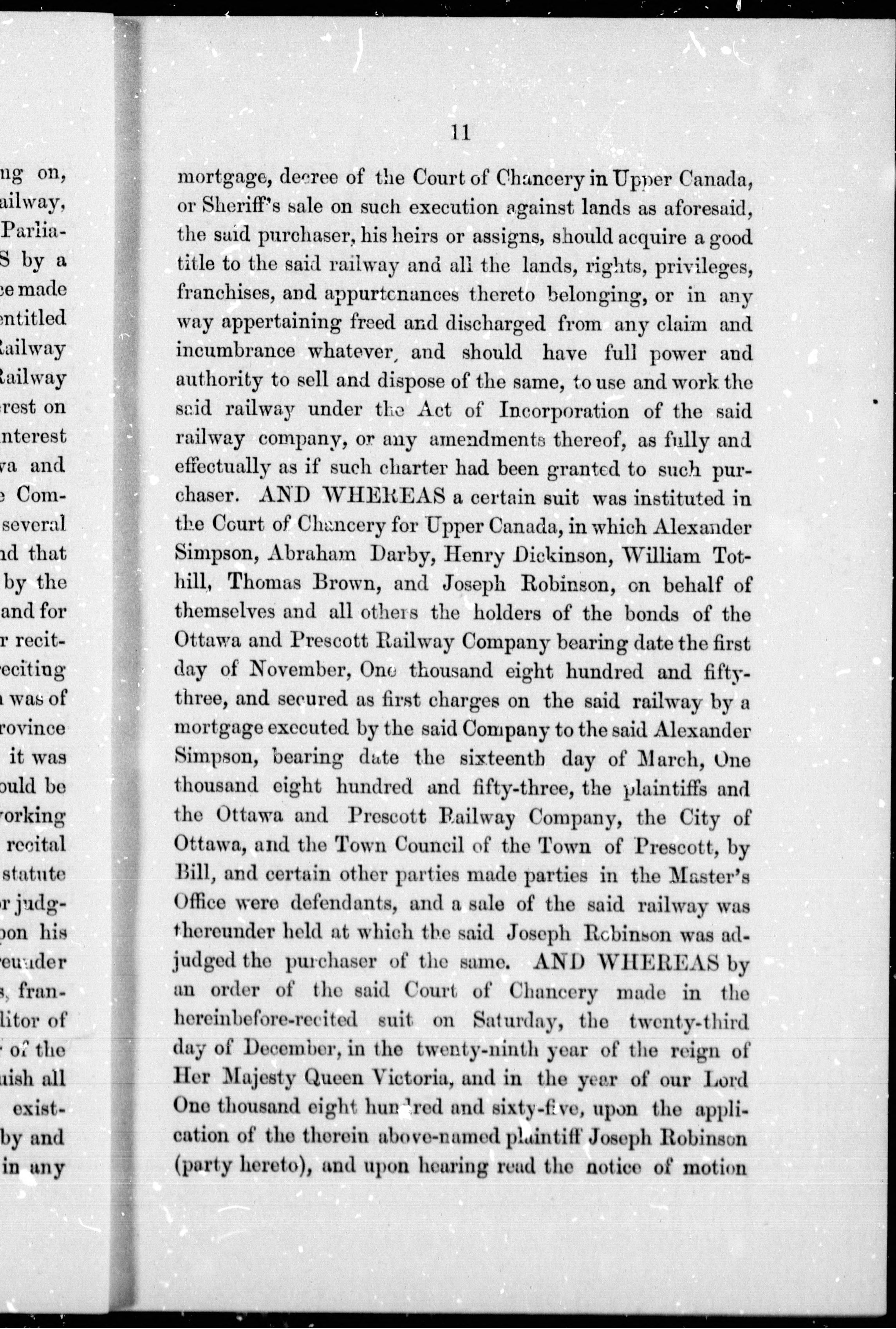 Copies of documents relating to the Ottawa & Prescott Railway, length 54 miles, from Prescott to Ottawa :