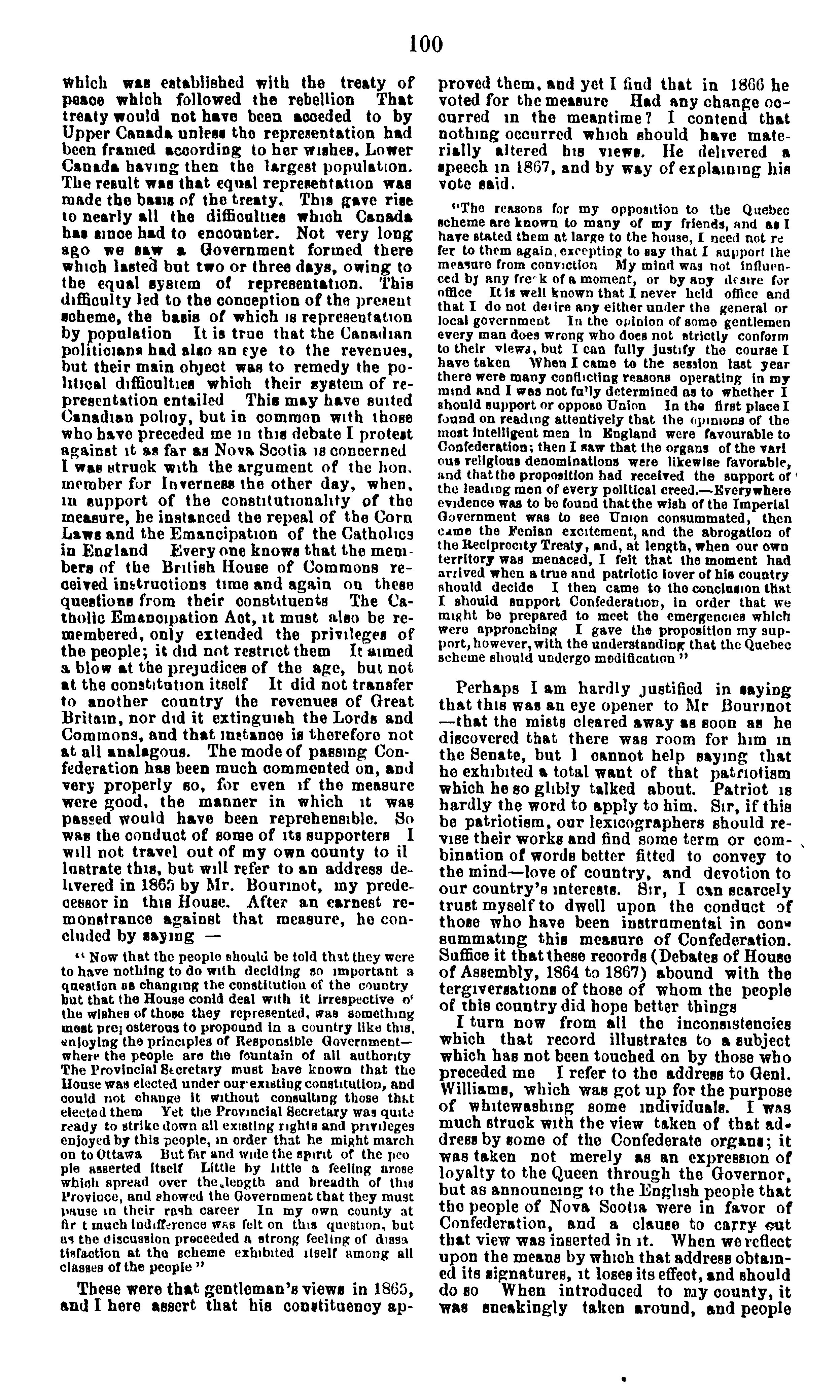 Debate on resolutions relative to repeal of the "British North America Act" in the House of Assembly of Nova Scotia; session 1868 .