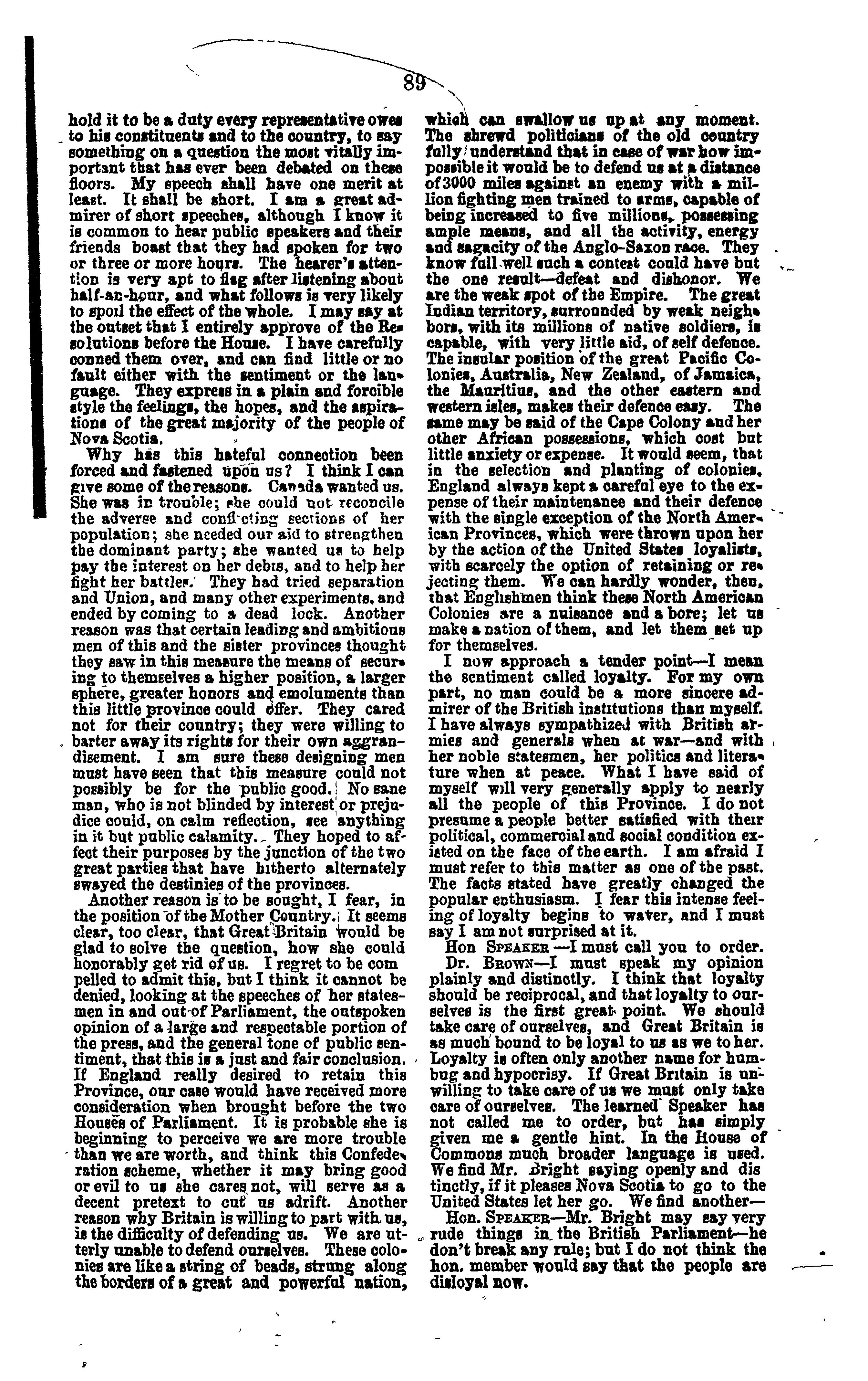 - Debate on resolutions relative to repeal of the "British North America Act" in the House of Assembly of Nova Scotia; session 1868 .
