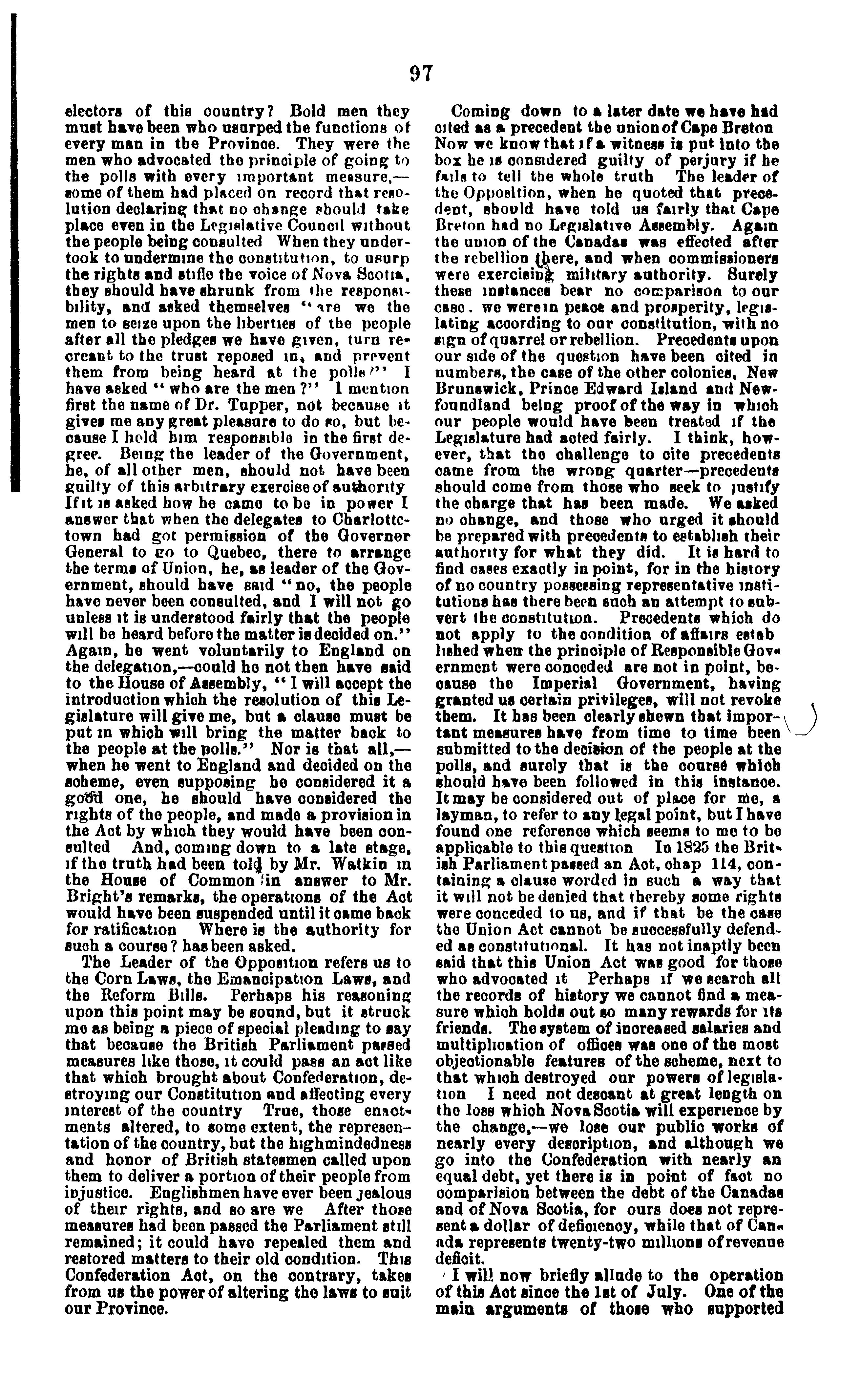 Debate on resolutions relative to repeal of the "British North America Act" in the House of Assembly of Nova Scotia; session 1868 .