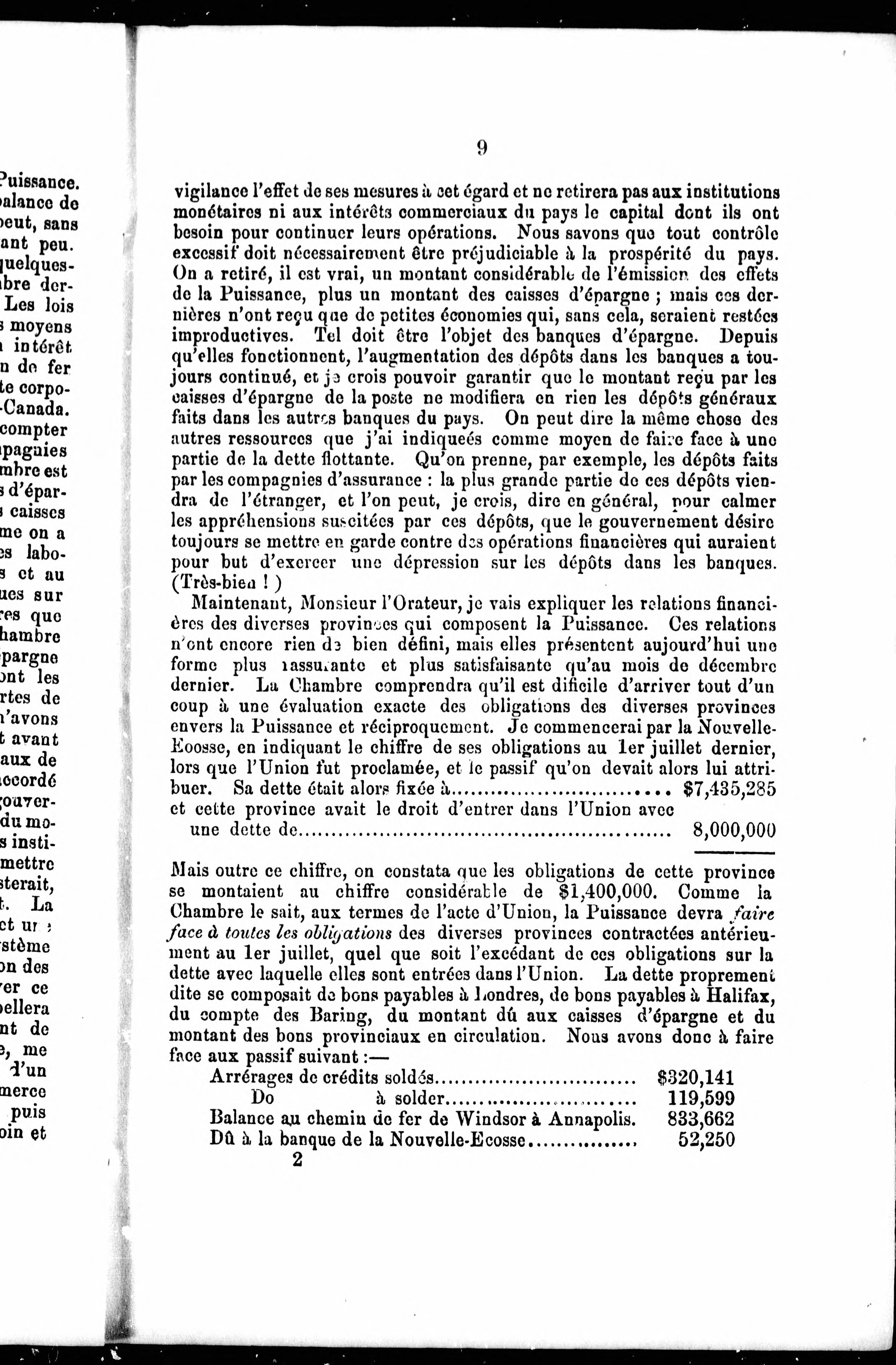Discours sur le budget par l'Honorable John Rose, ministère des finances du Canada :