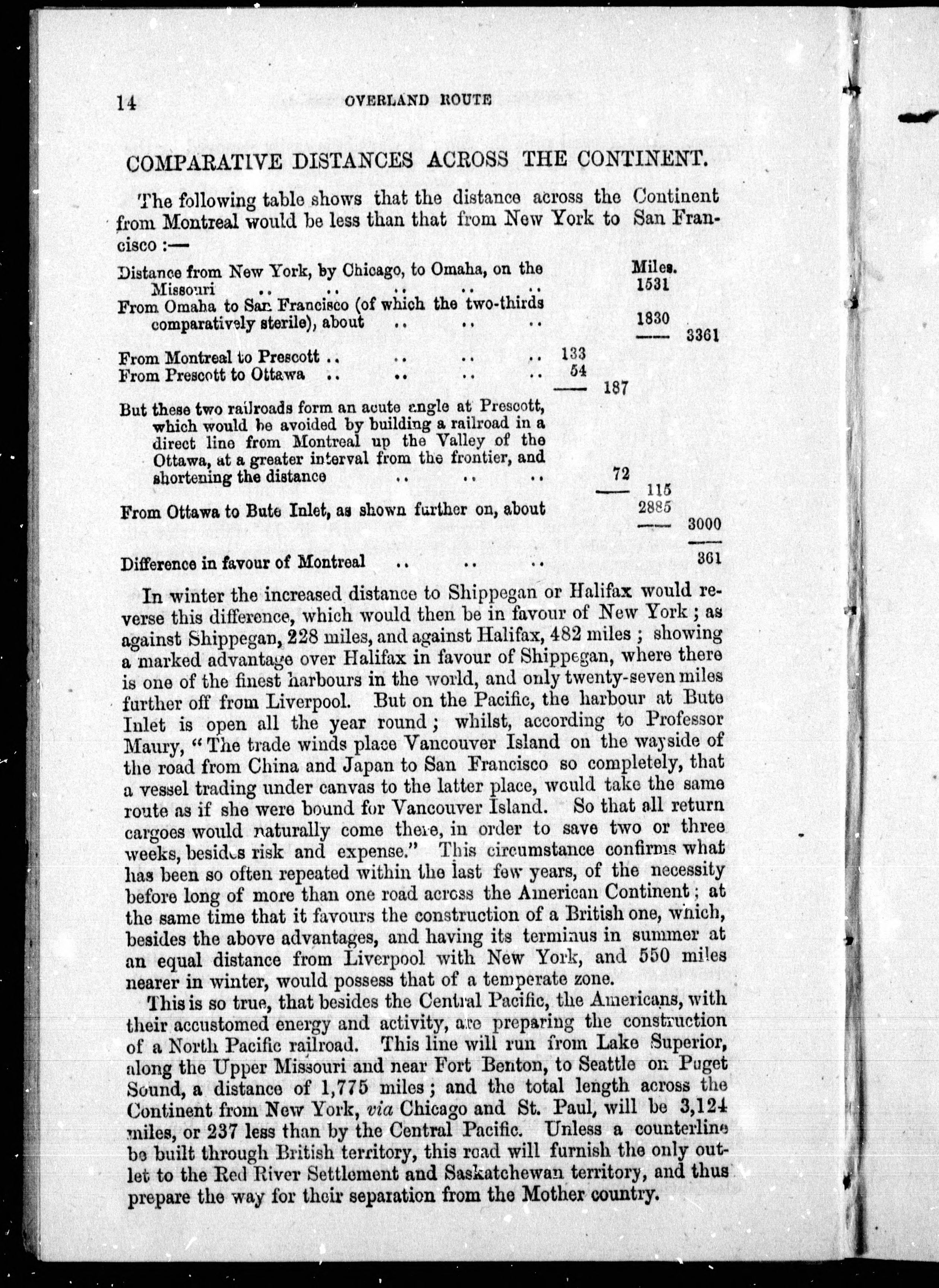 Overland route through British North America, or, The shortest and speediest road to the east /