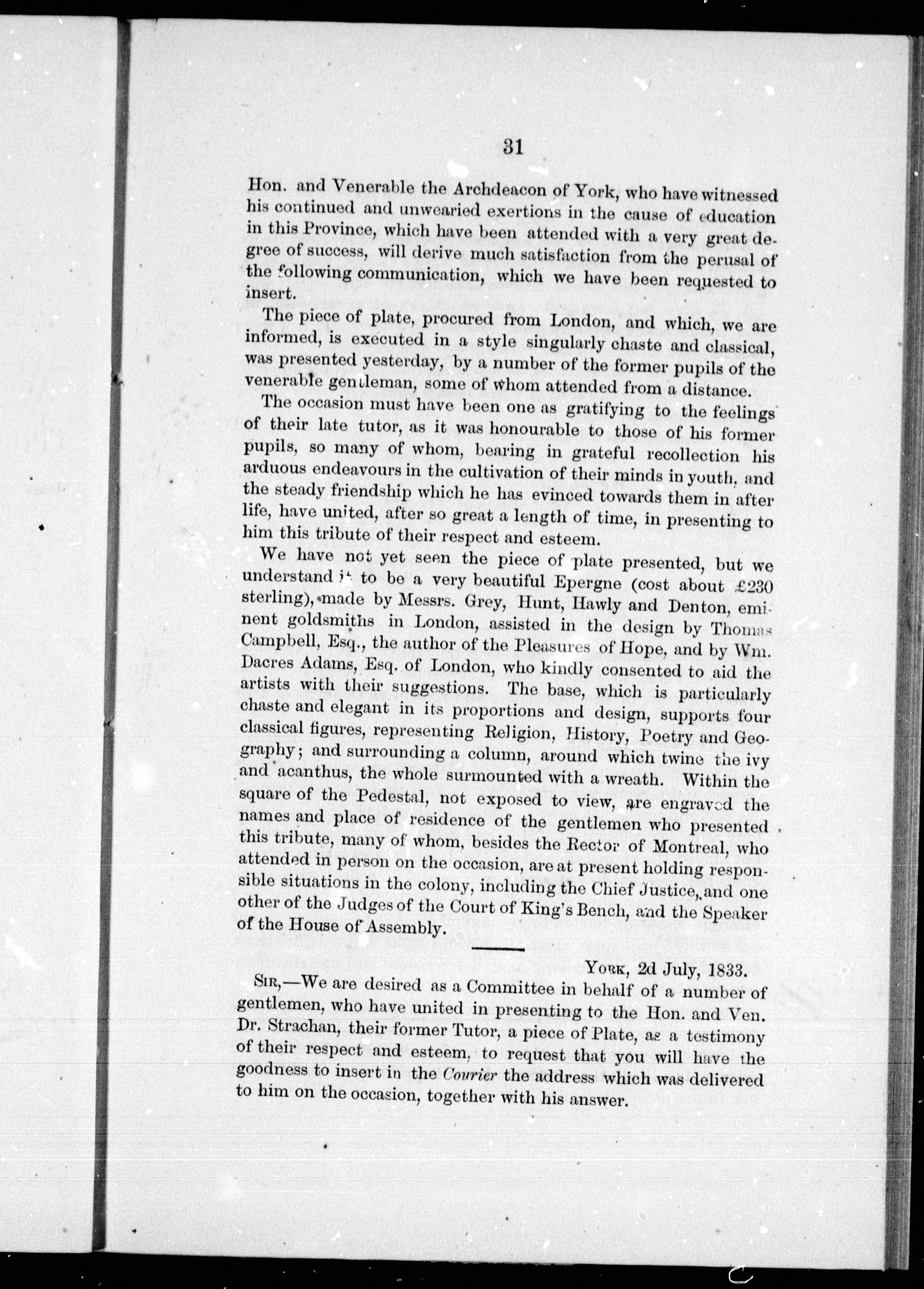 A sermon on the life, labours and character of the late Honourable and Right-Reverend John Strachan, D.D., LLD., Lord Bishop of Toronto : and in connection with the Bishop Strachan Memorial Church, Cornwall