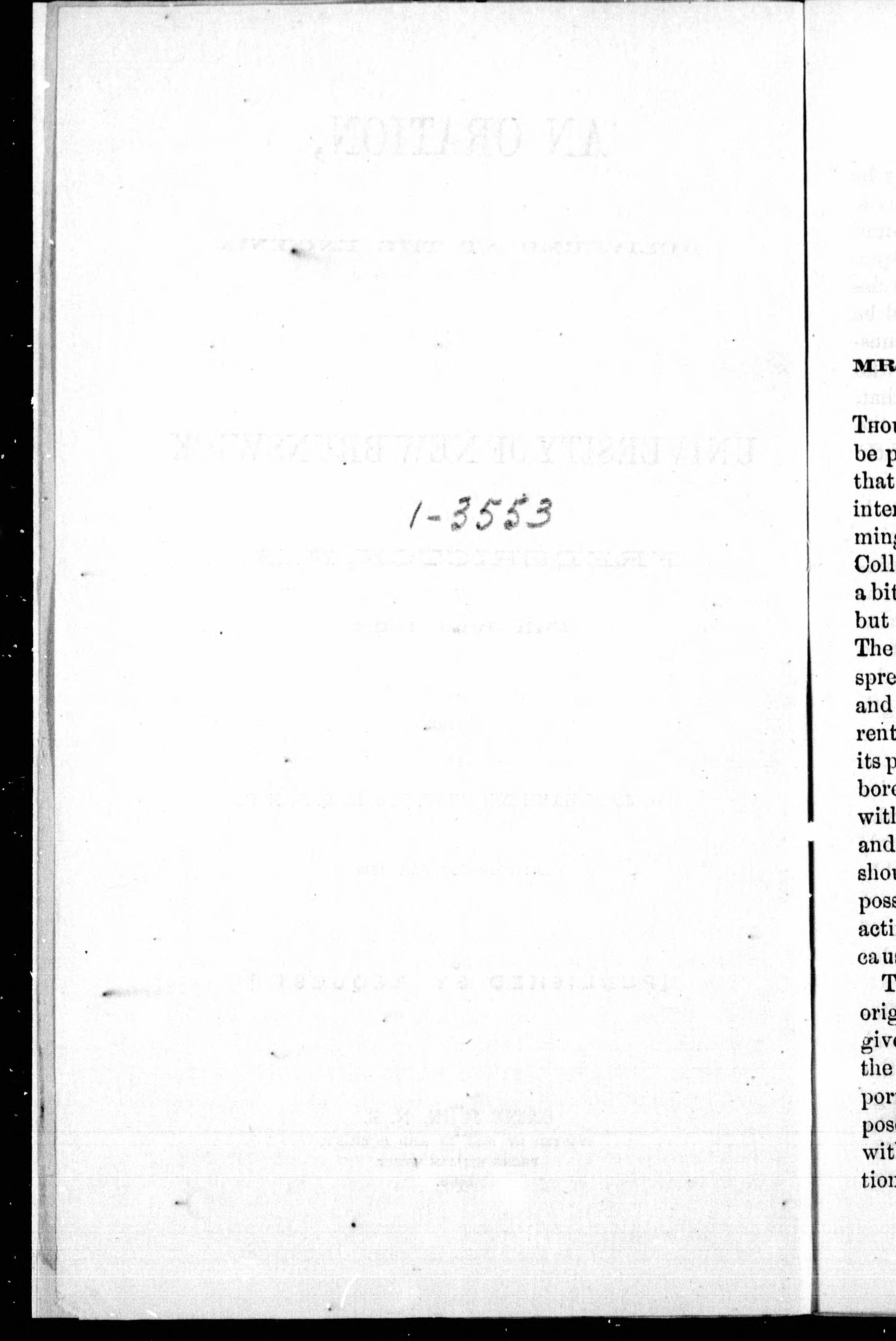 - An oration delivered at the encoenia of the University of New Brunswick : Fredericton, N.B., 25th June 1868