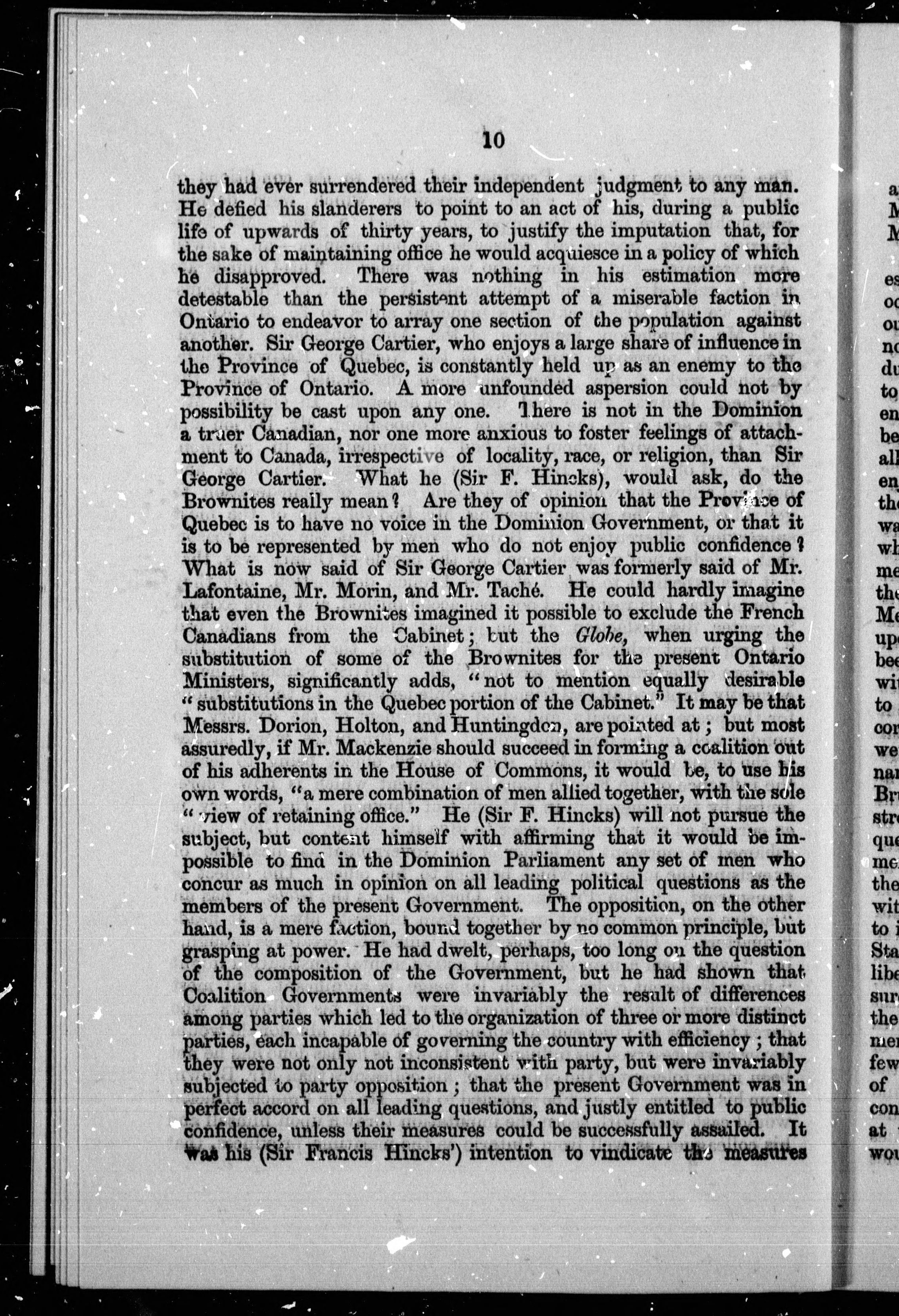 Speech delivered at Pembroke, 27th October, 1870, by the Hon. Sir F. Hincks, C.B., K.C.M.G., minister of finance, Canada, on public affaires.