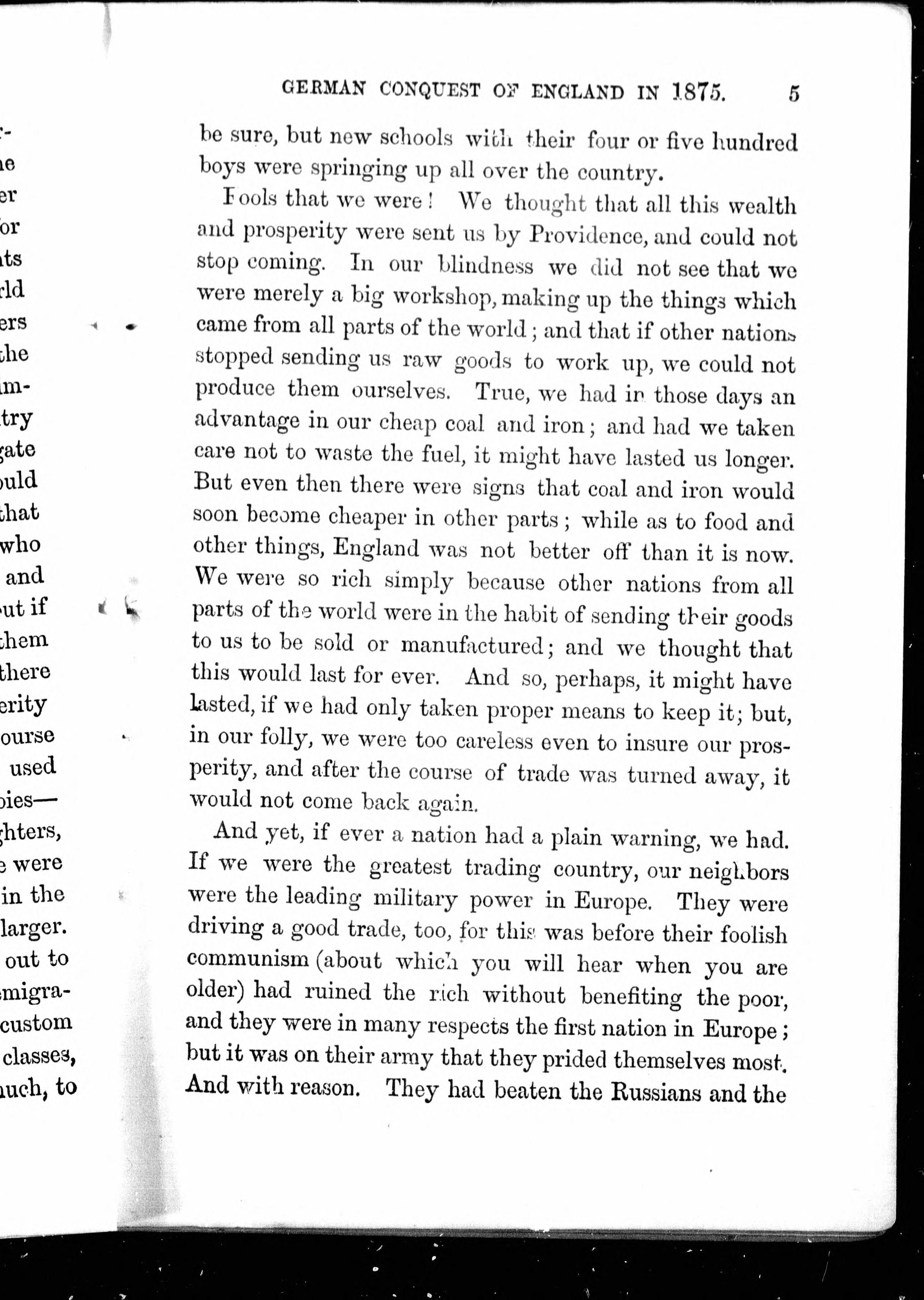 - The German conquest of England in 1875 and the battle of Dorking, or, Reminiscences of a volunteer : describing the arrival of the German Armada, destruction of the British fleet, the decisive battle of Dorking, capture of London, downfall of the British empire