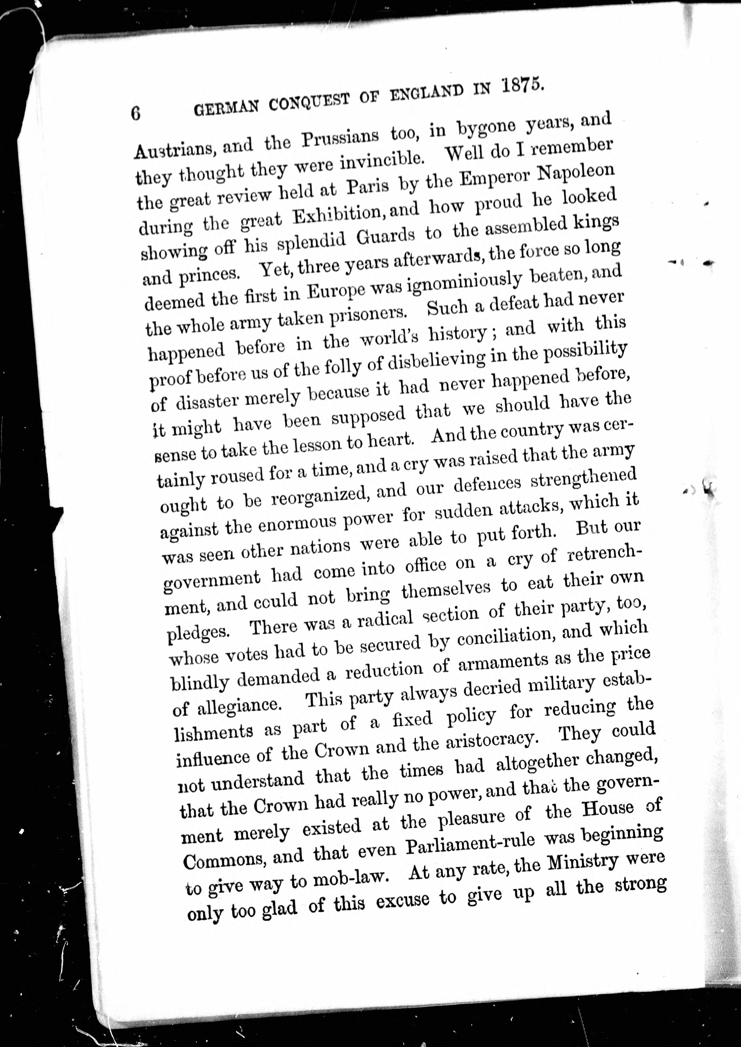 - The German conquest of England in 1875 and the battle of Dorking, or, Reminiscences of a volunteer : describing the arrival of the German Armada, destruction of the British fleet, the decisive battle of Dorking, capture of London, downfall of the British empire