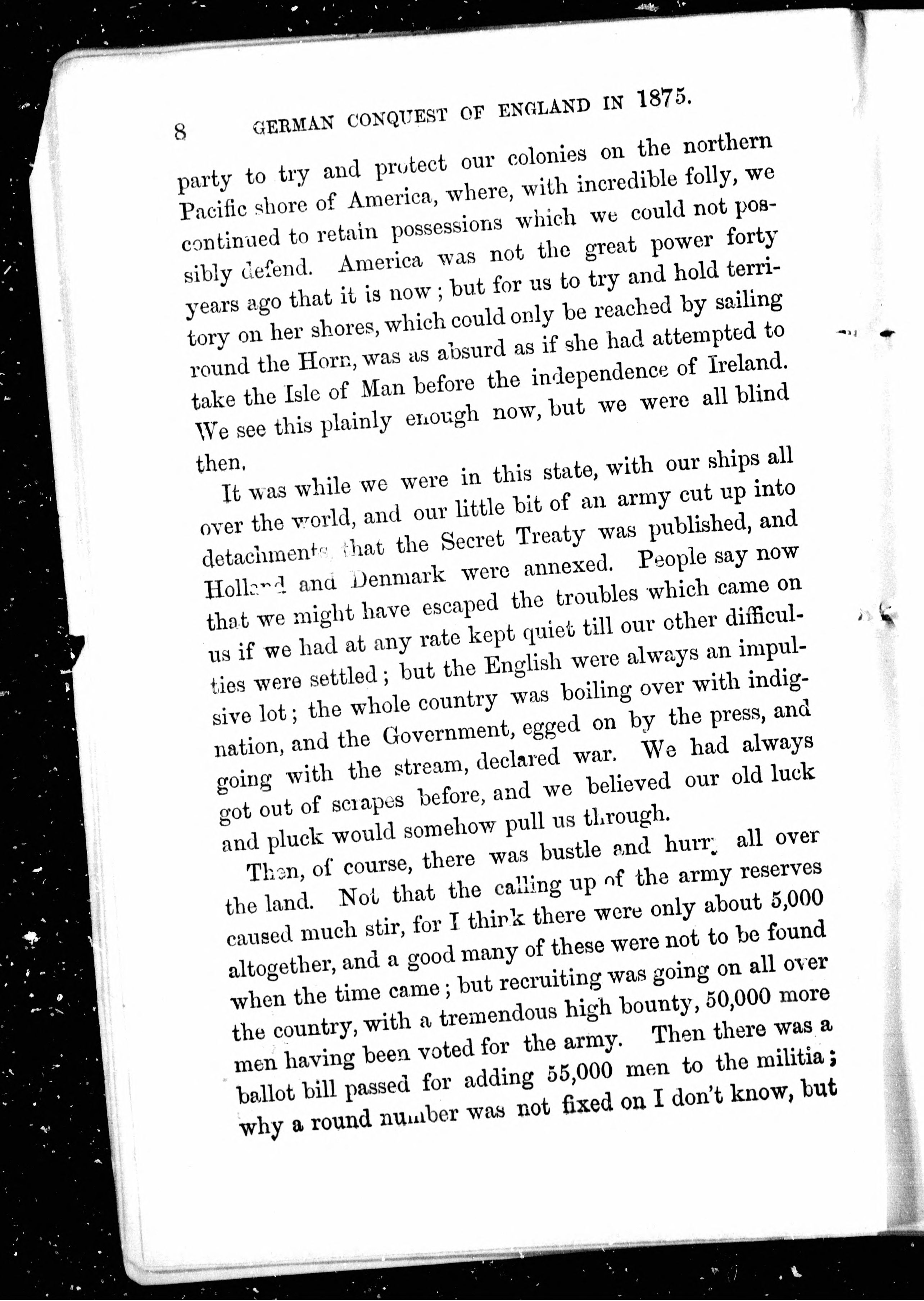 - The German conquest of England in 1875 and the battle of Dorking, or, Reminiscences of a volunteer : describing the arrival of the German Armada, destruction of the British fleet, the decisive battle of Dorking, capture of London, downfall of the British empire