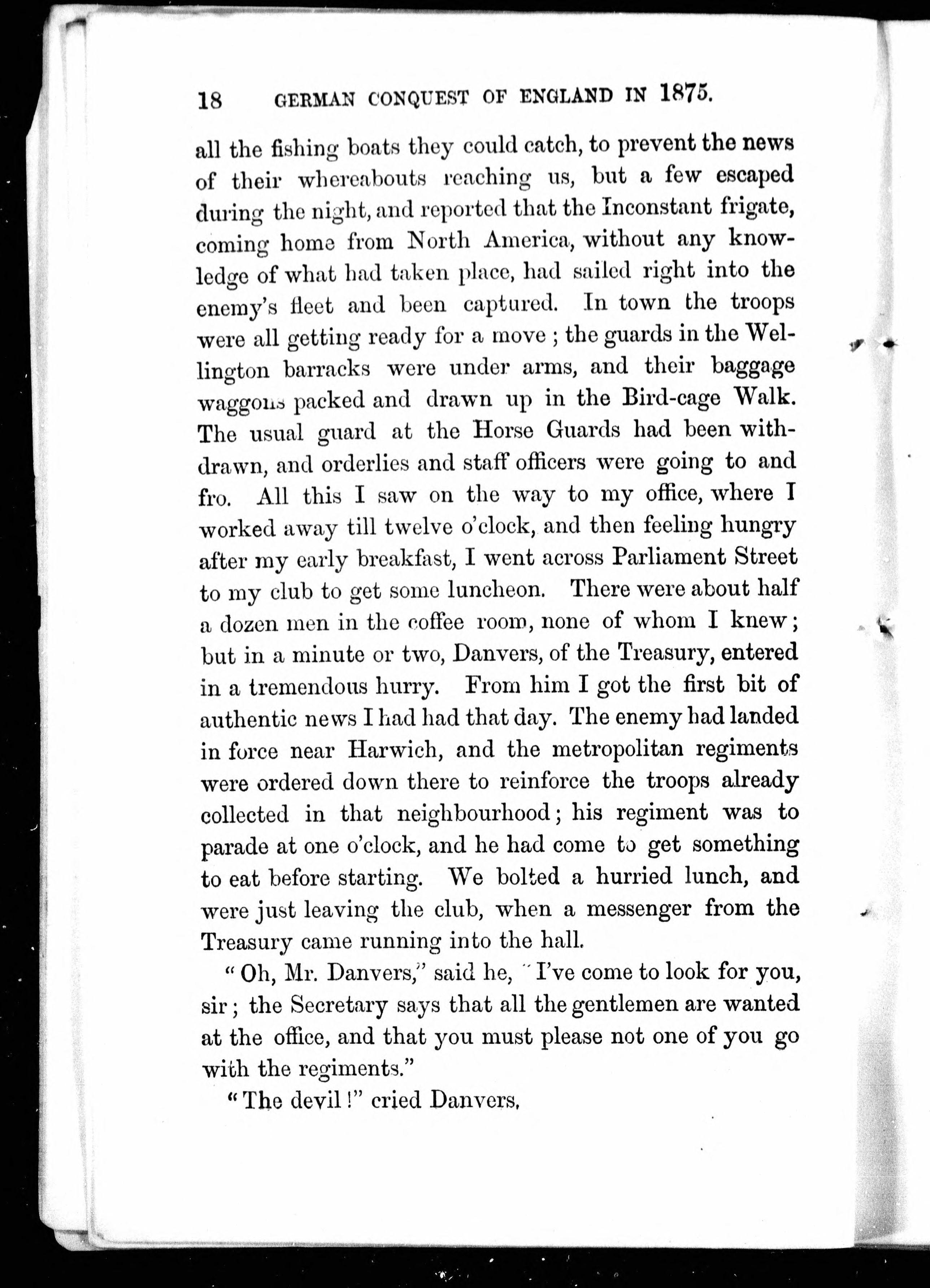 - The German conquest of England in 1875 and the battle of Dorking, or, Reminiscences of a volunteer : describing the arrival of the German Armada, destruction of the British fleet, the decisive battle of Dorking, capture of London, downfall of the British empire