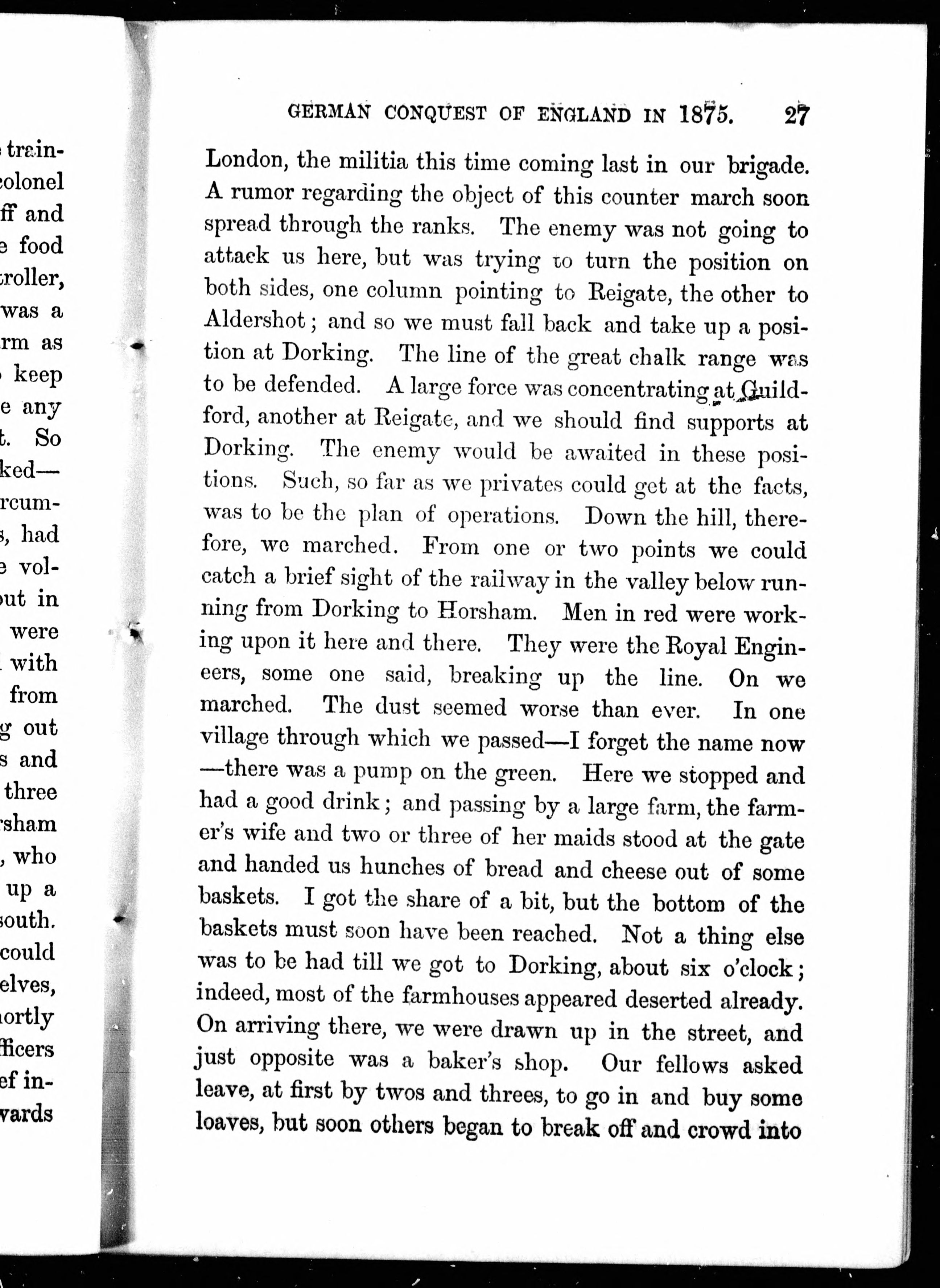 - The German conquest of England in 1875 and the battle of Dorking, or, Reminiscences of a volunteer : describing the arrival of the German Armada, destruction of the British fleet, the decisive battle of Dorking, capture of London, downfall of the British empire