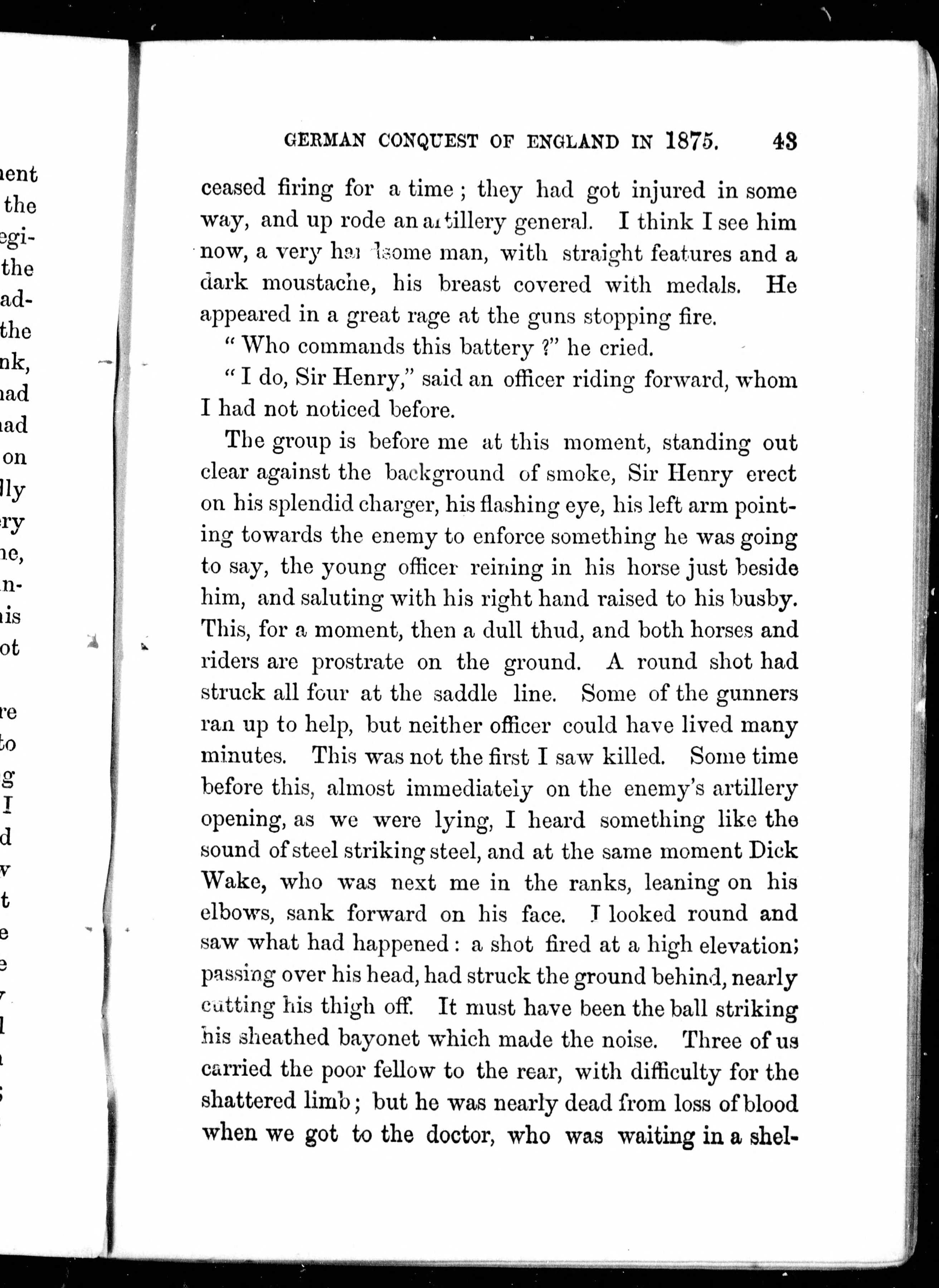 - The German conquest of England in 1875 and the battle of Dorking, or, Reminiscences of a volunteer : describing the arrival of the German Armada, destruction of the British fleet, the decisive battle of Dorking, capture of London, downfall of the British empire
