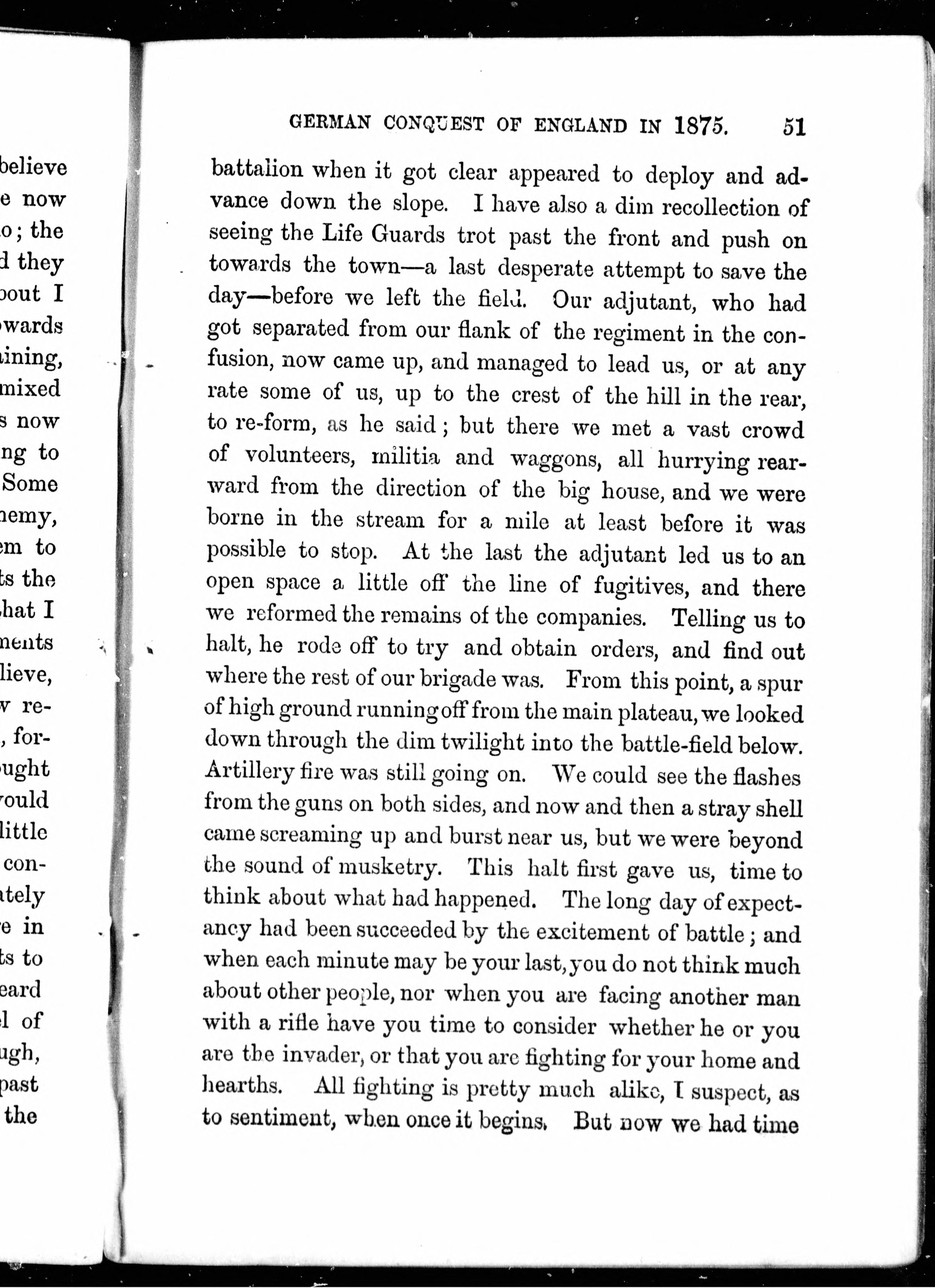- The German conquest of England in 1875 and the battle of Dorking, or, Reminiscences of a volunteer : describing the arrival of the German Armada, destruction of the British fleet, the decisive battle of Dorking, capture of London, downfall of the British empire